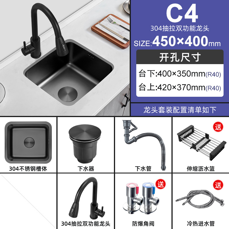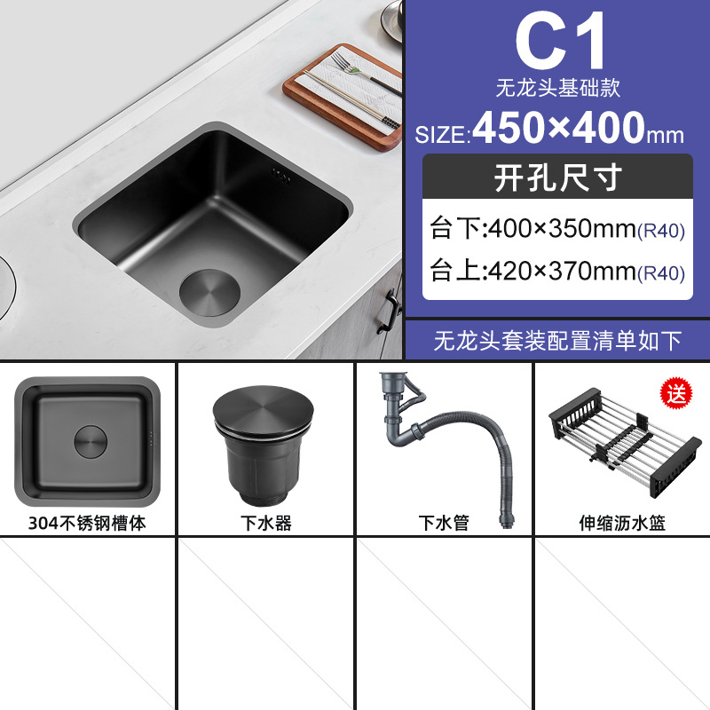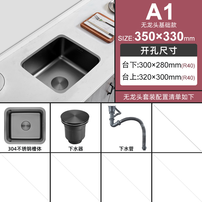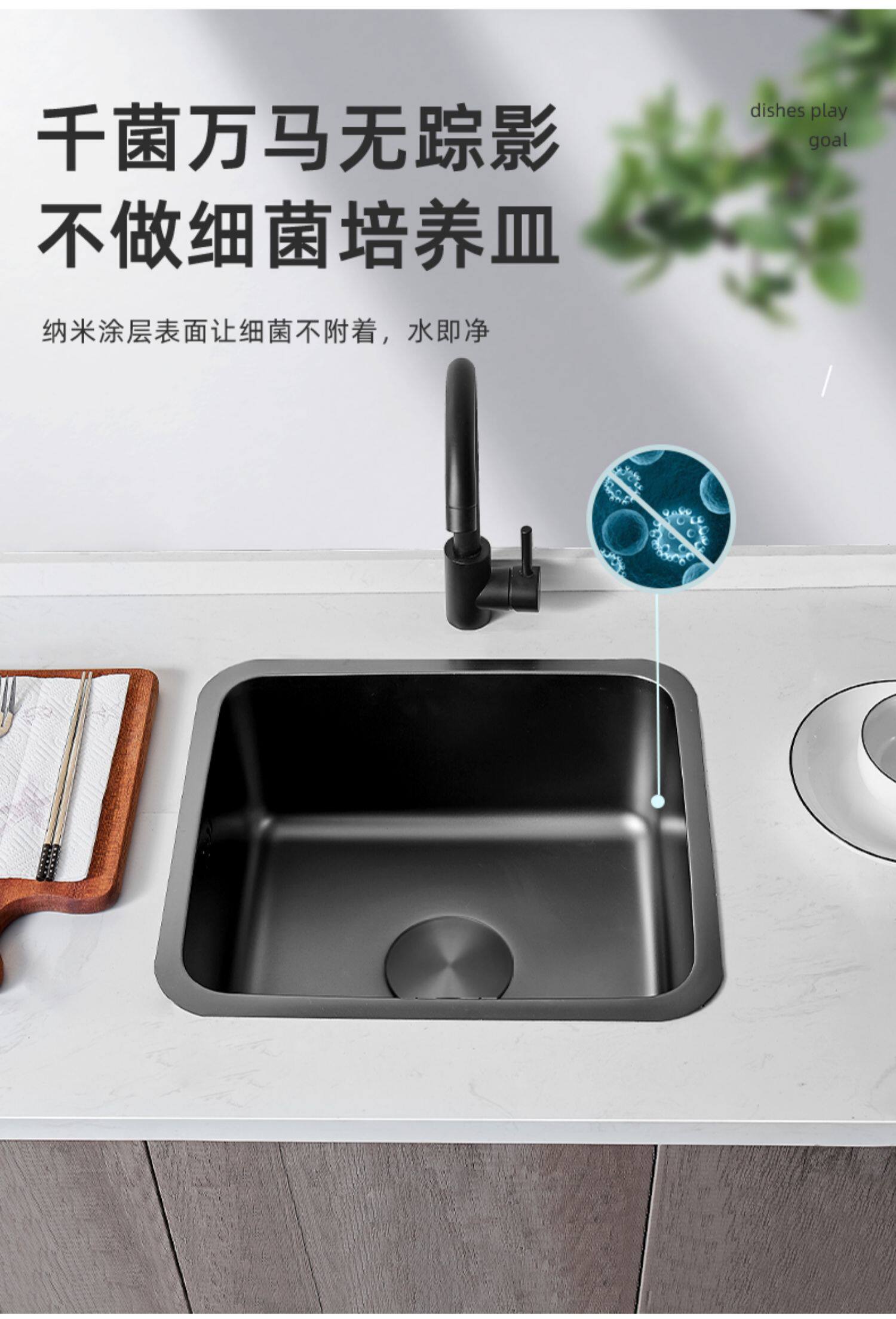 블랙 나노 바 작은 싱크대 싱글 싱크 발코니 섬 304 스테인레스 주방 접시 분지 스몰 사이즈 분지