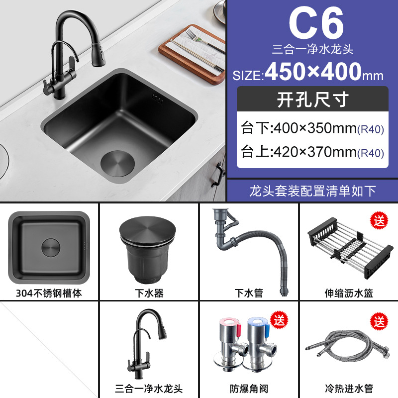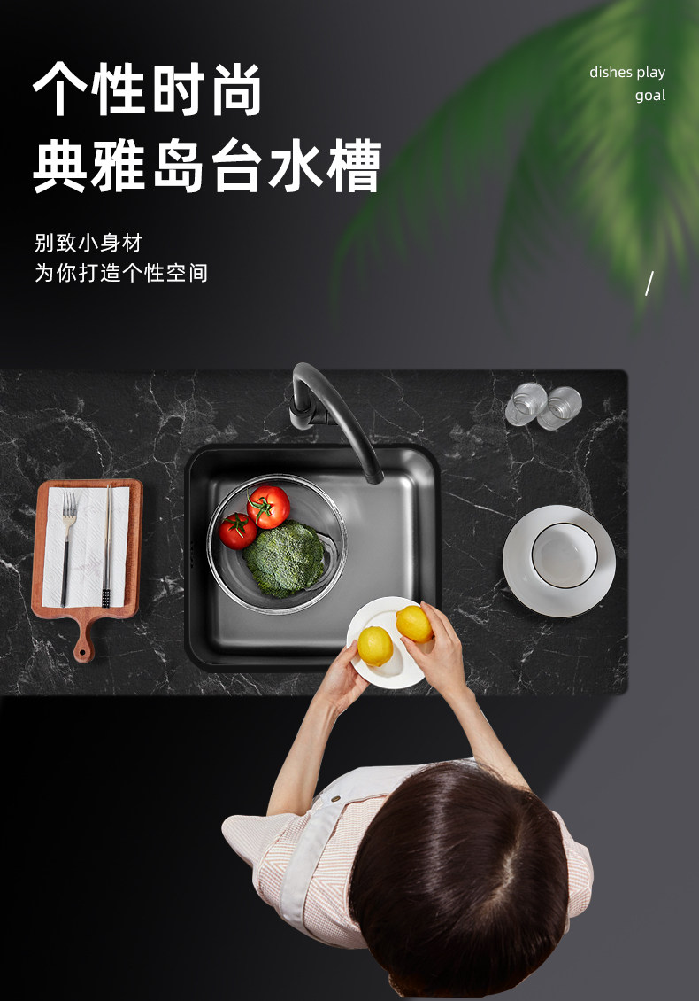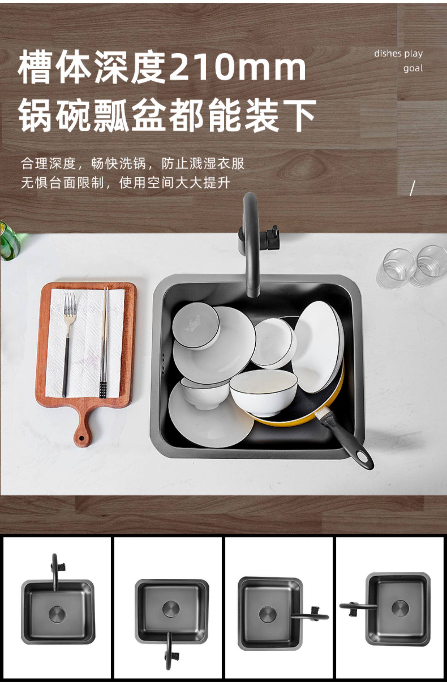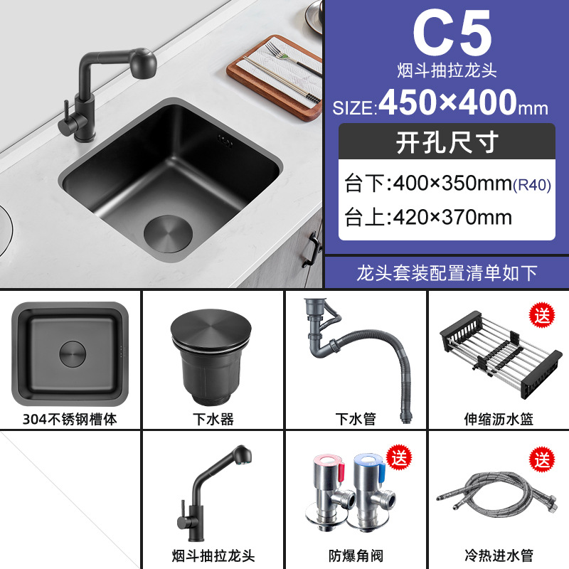 블랙 나노 바 작은 싱크대 싱글 싱크 발코니 섬 304 스테인레스 주방 접시 분지 스몰 사이즈 분지
