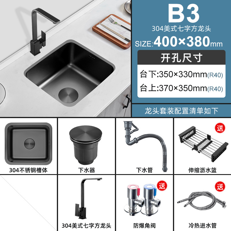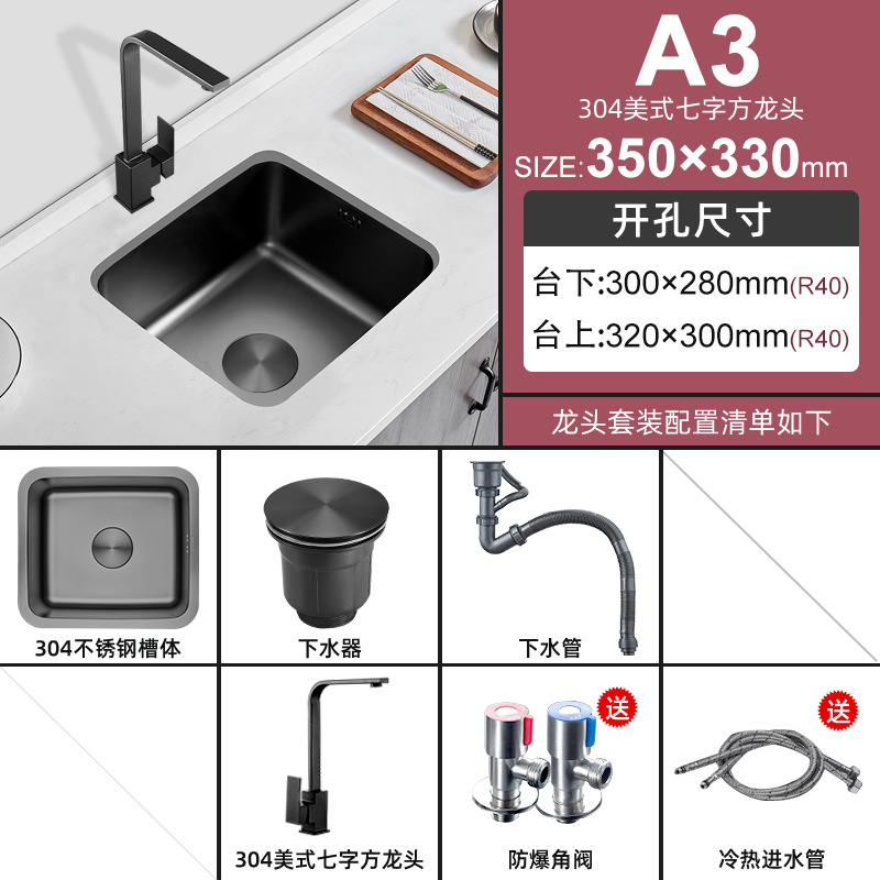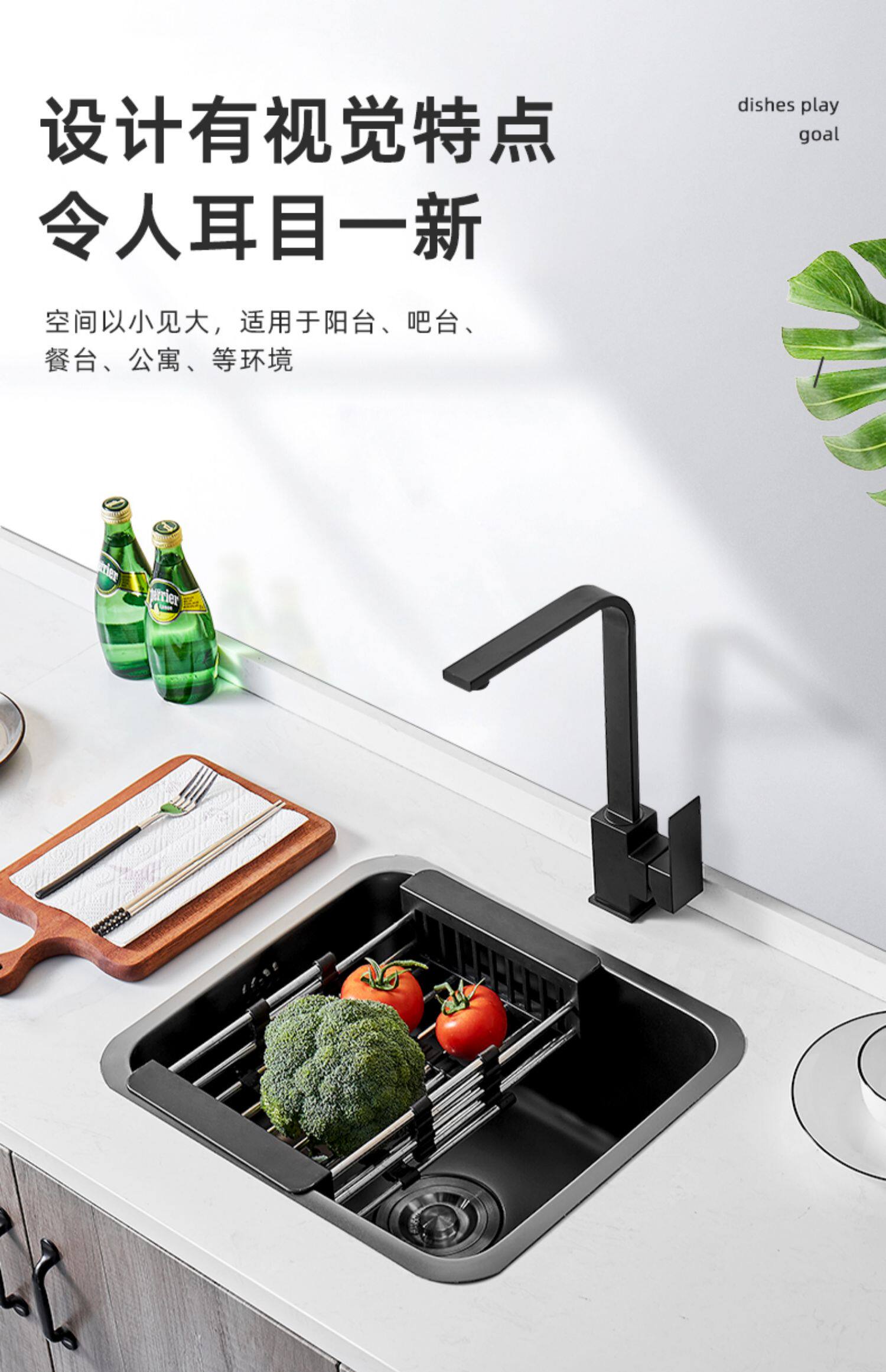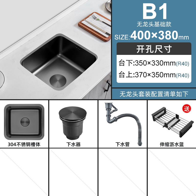 블랙 나노 바 작은 싱크대 싱글 싱크 발코니 섬 304 스테인레스 주방 접시 분지 스몰 사이즈 분지스토어 가기