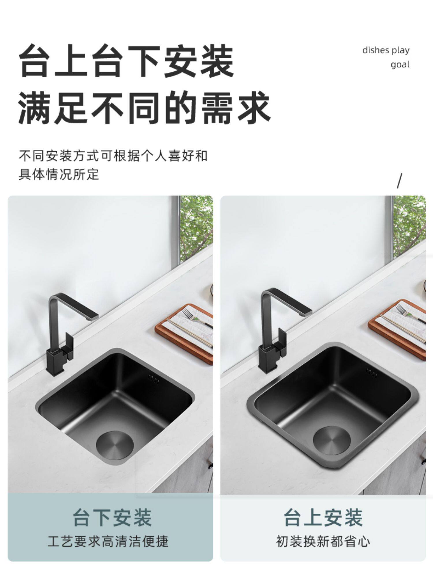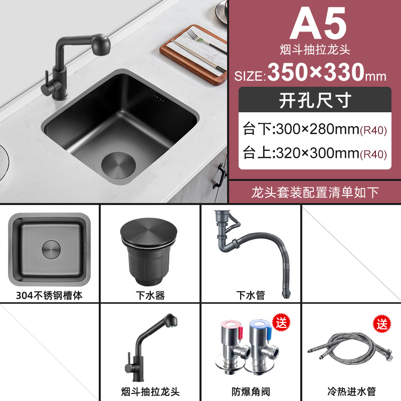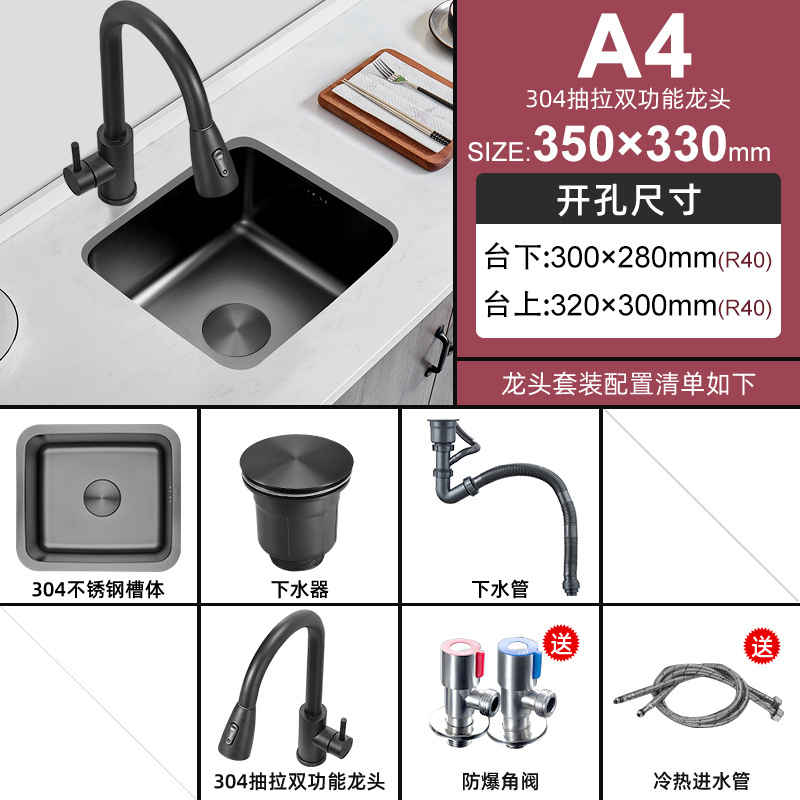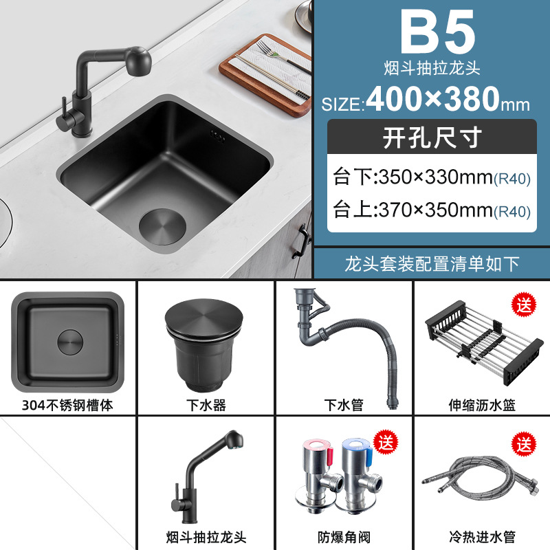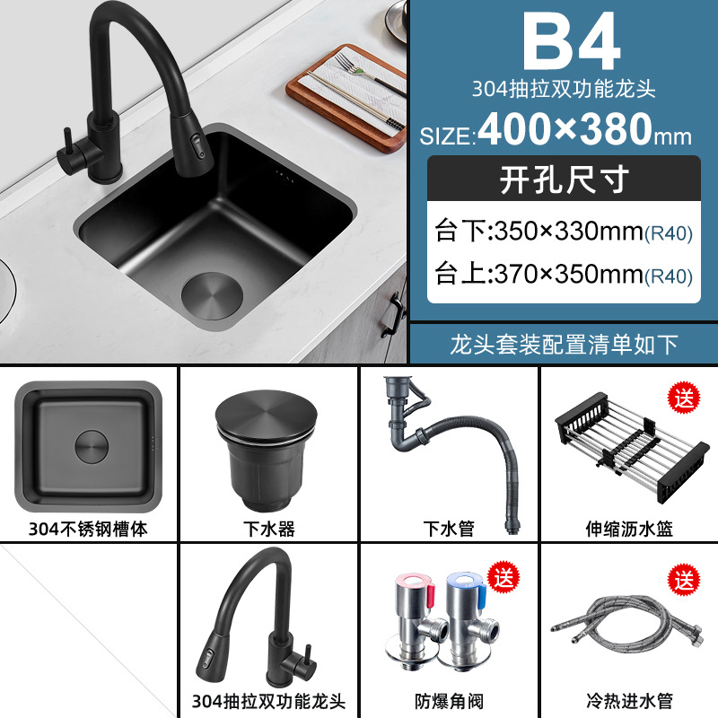 블랙 나노 바 작은 싱크대 싱글 싱크 발코니 섬 304 스테인레스 주방 접시 분지 스몰 사이즈 분지스토어 가기
