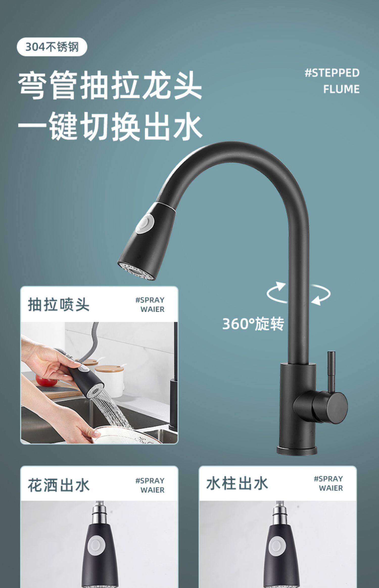 • 블랙 304 스테인레스 스틸 팔꿈치 수도꼭지가있는 35*33