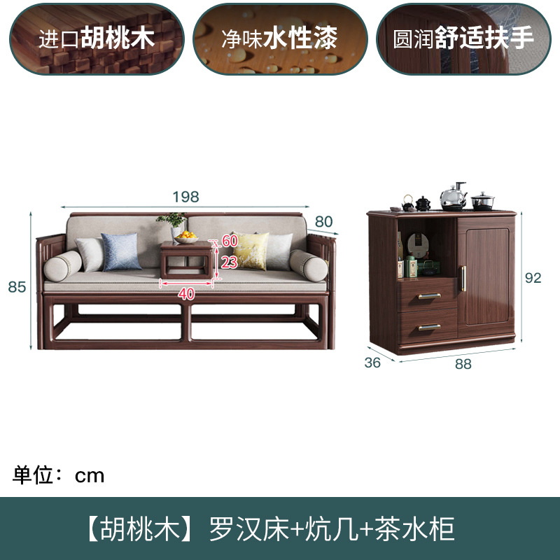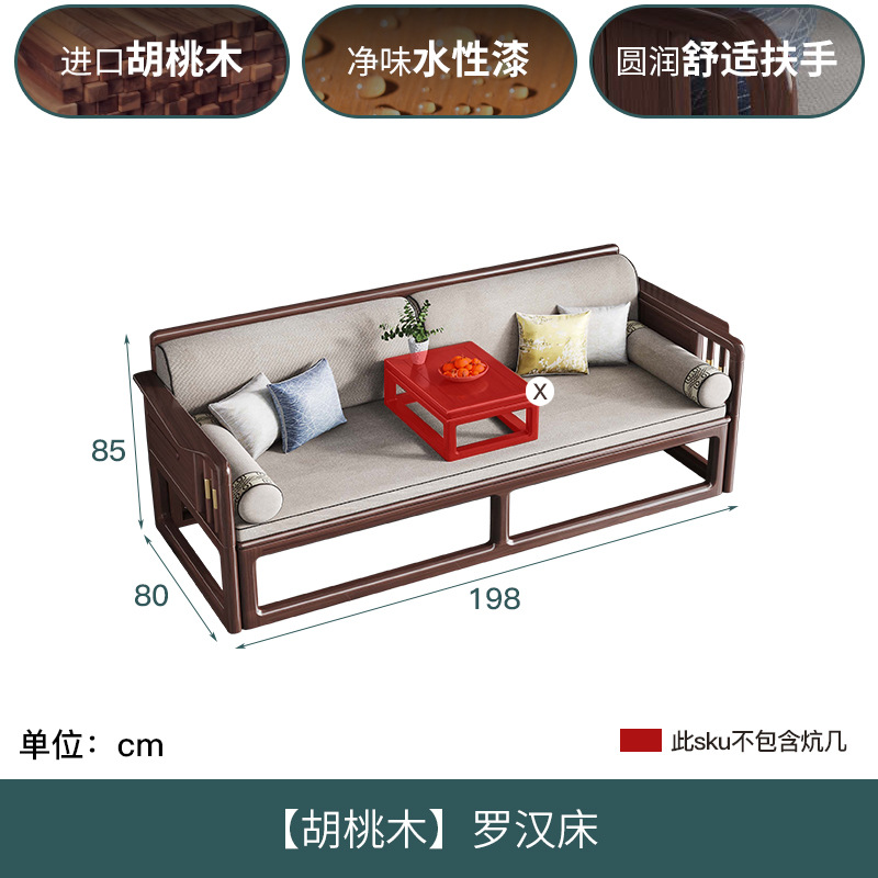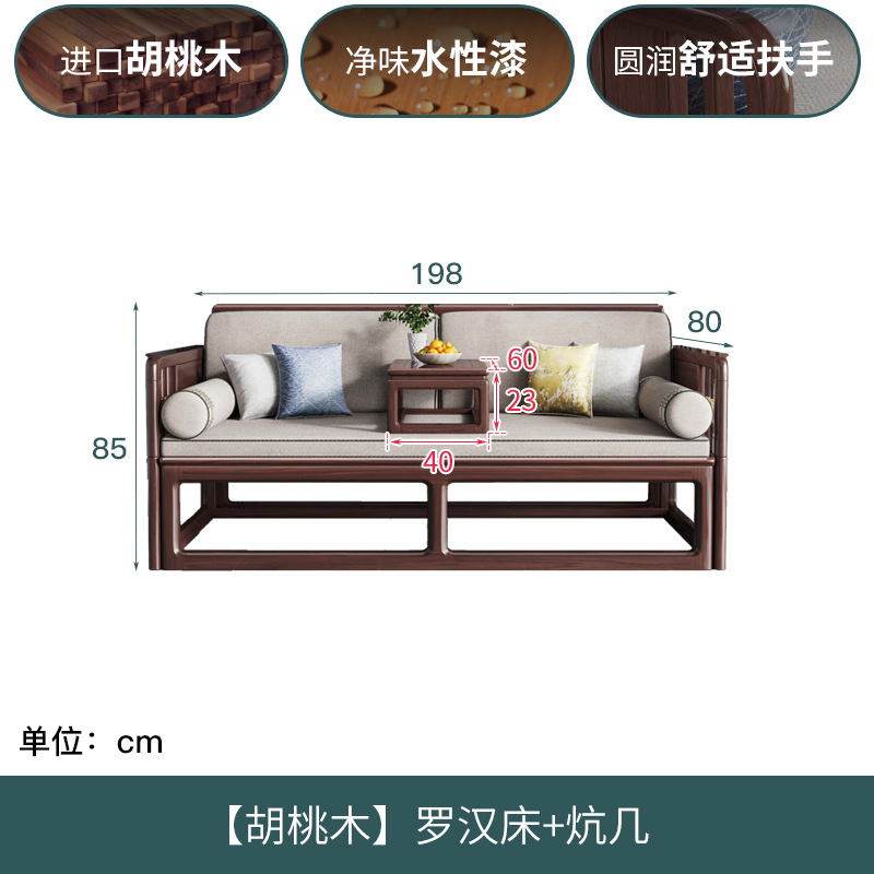 Luohan 침대 새로운 중국 호두 단단한 나무 푸시 풀 거실 티 테이블과 의자 조합 작은 아파트 텔레스코픽 접이식 소파