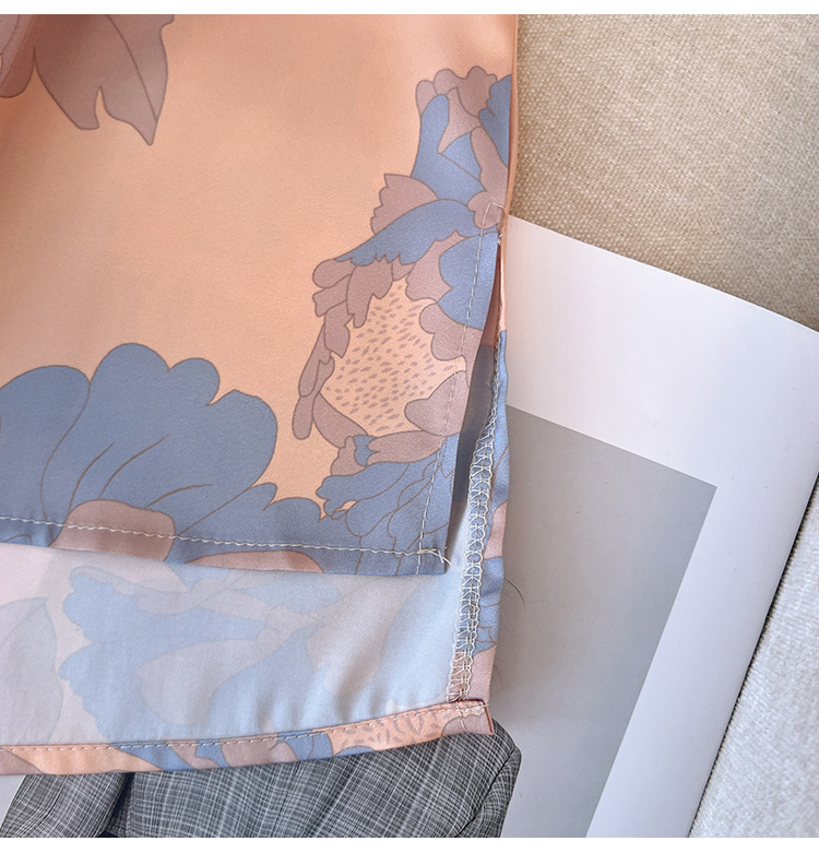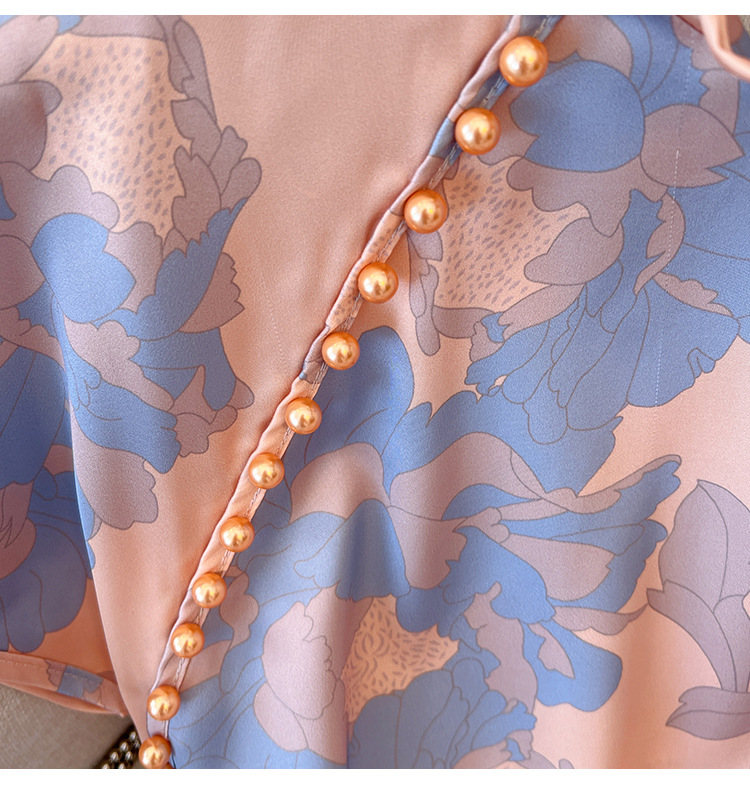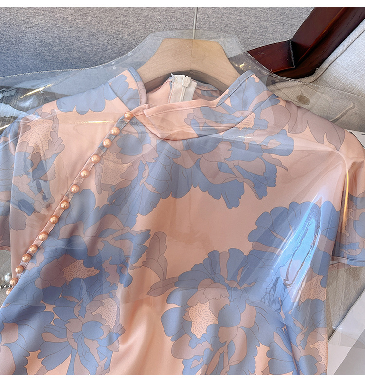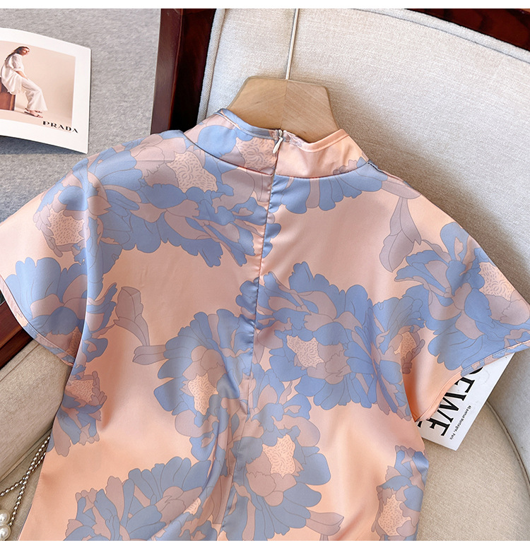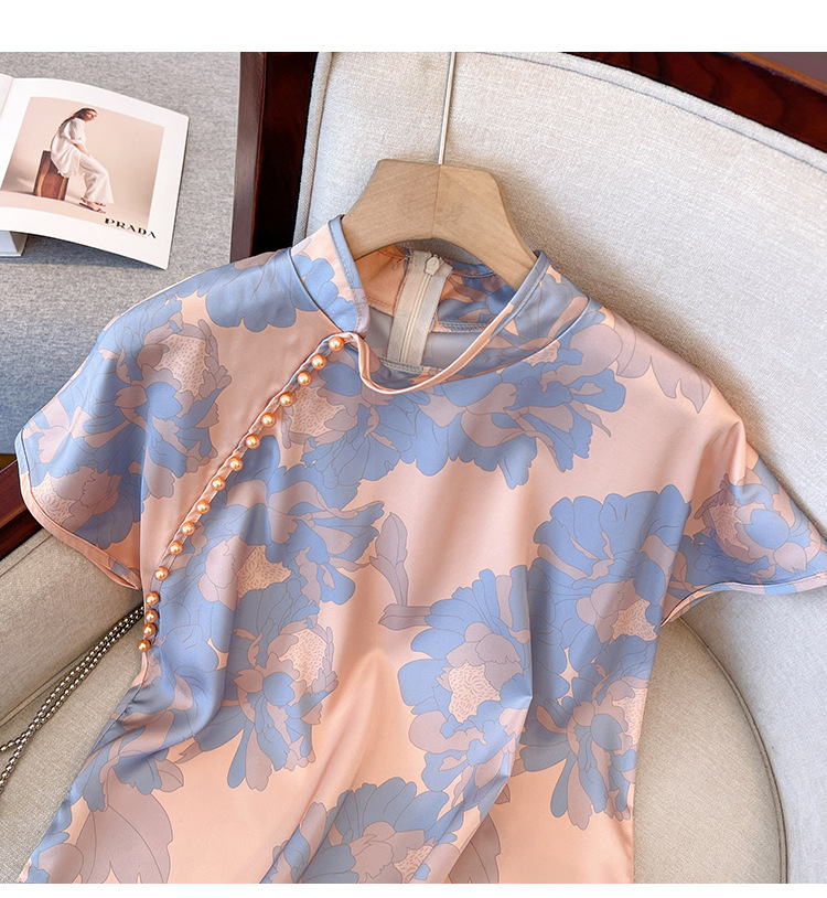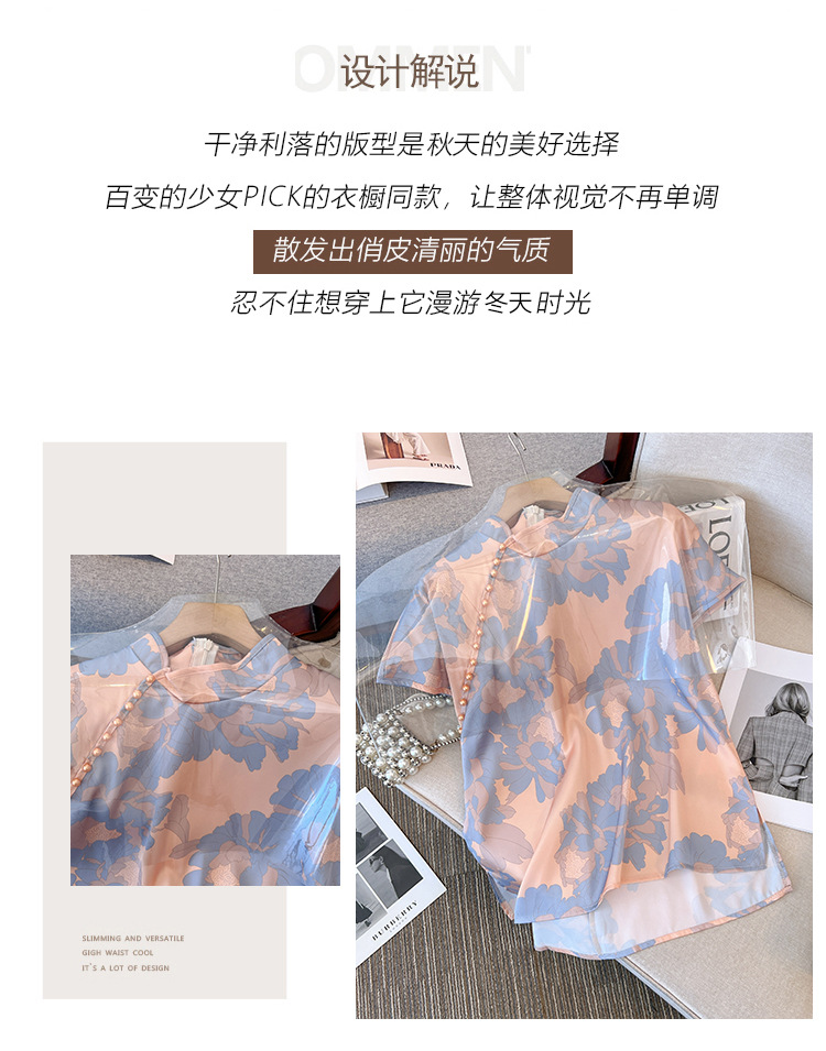 리얼 샷 새로운 중국 빛 Guofeng 실크 반소매 탑 2023 여름 새로운 인쇄 복고풍 풀오버 셔츠