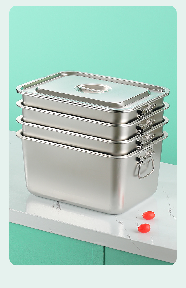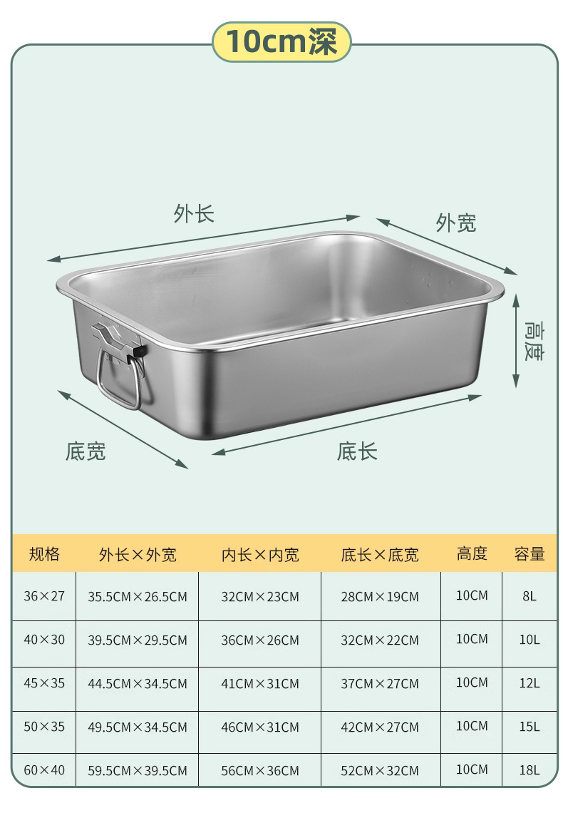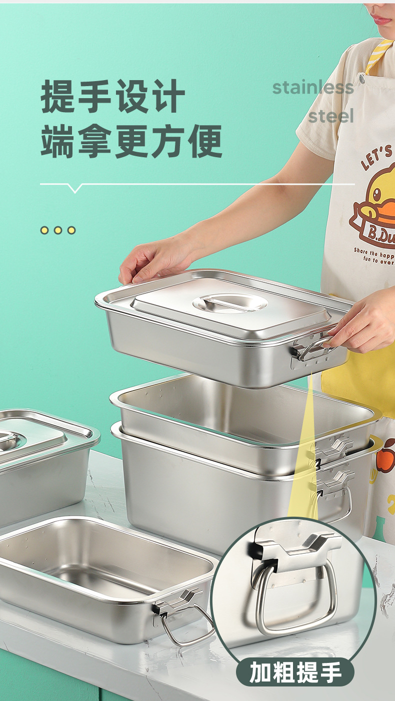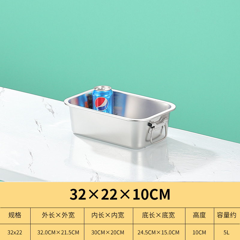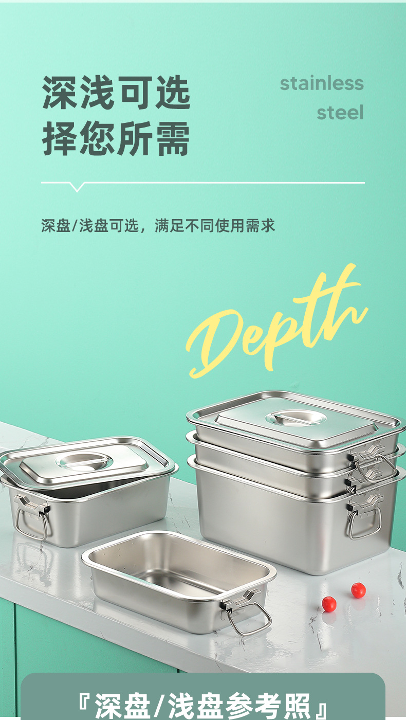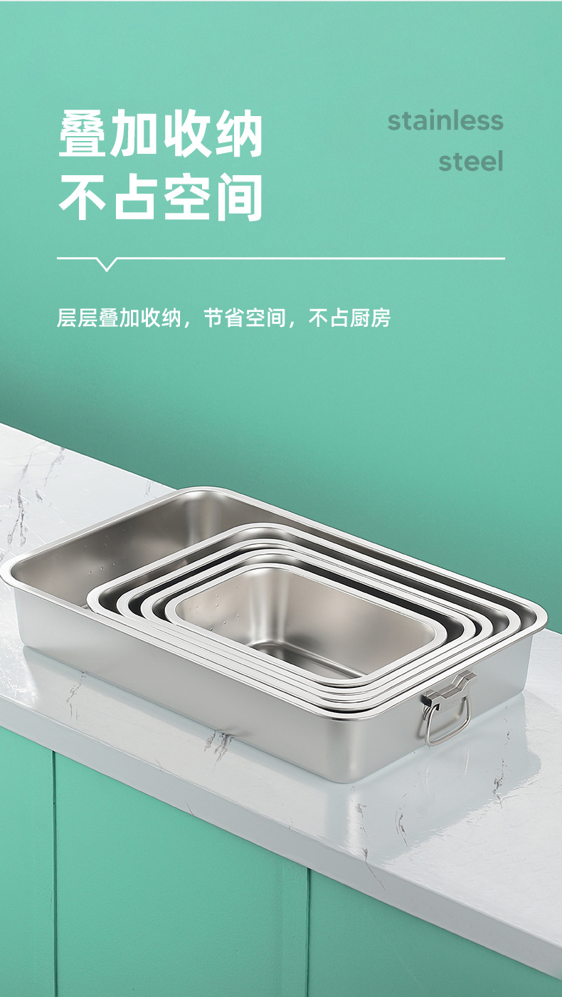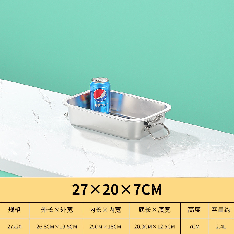 스테인레스 스틸 사각 플레이트 직사각형 트레이 깊은 사각 분지 뚜껑 상자 플랫 바닥 플레이트 상업용 철판 귀 구운 생선 접시스토어 가기