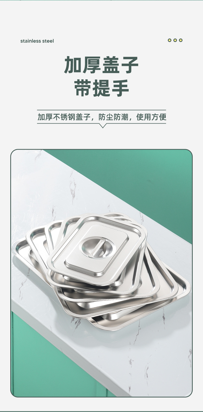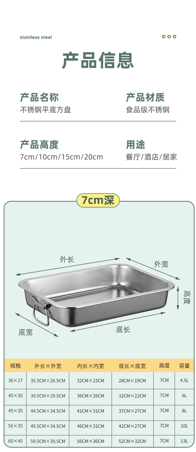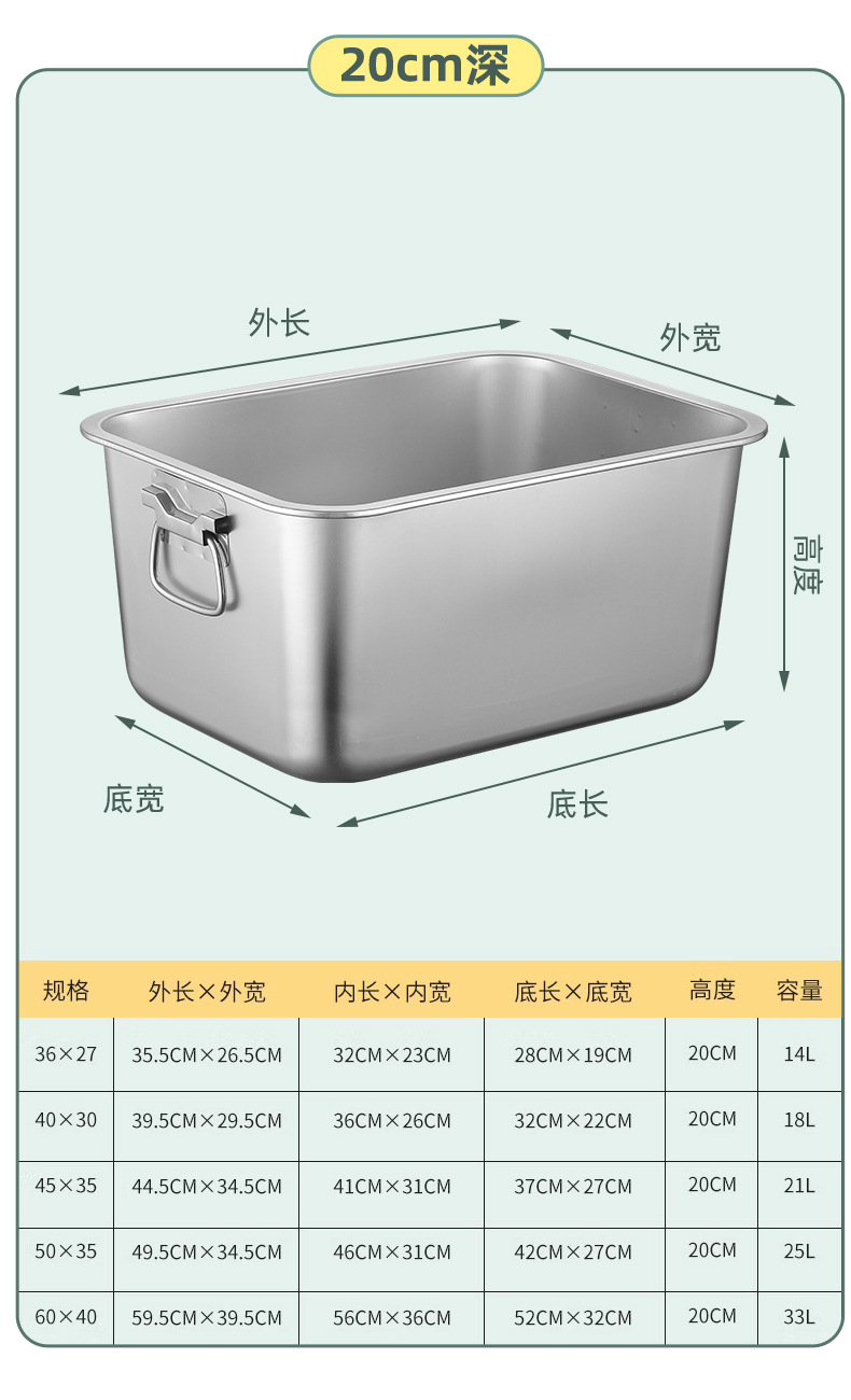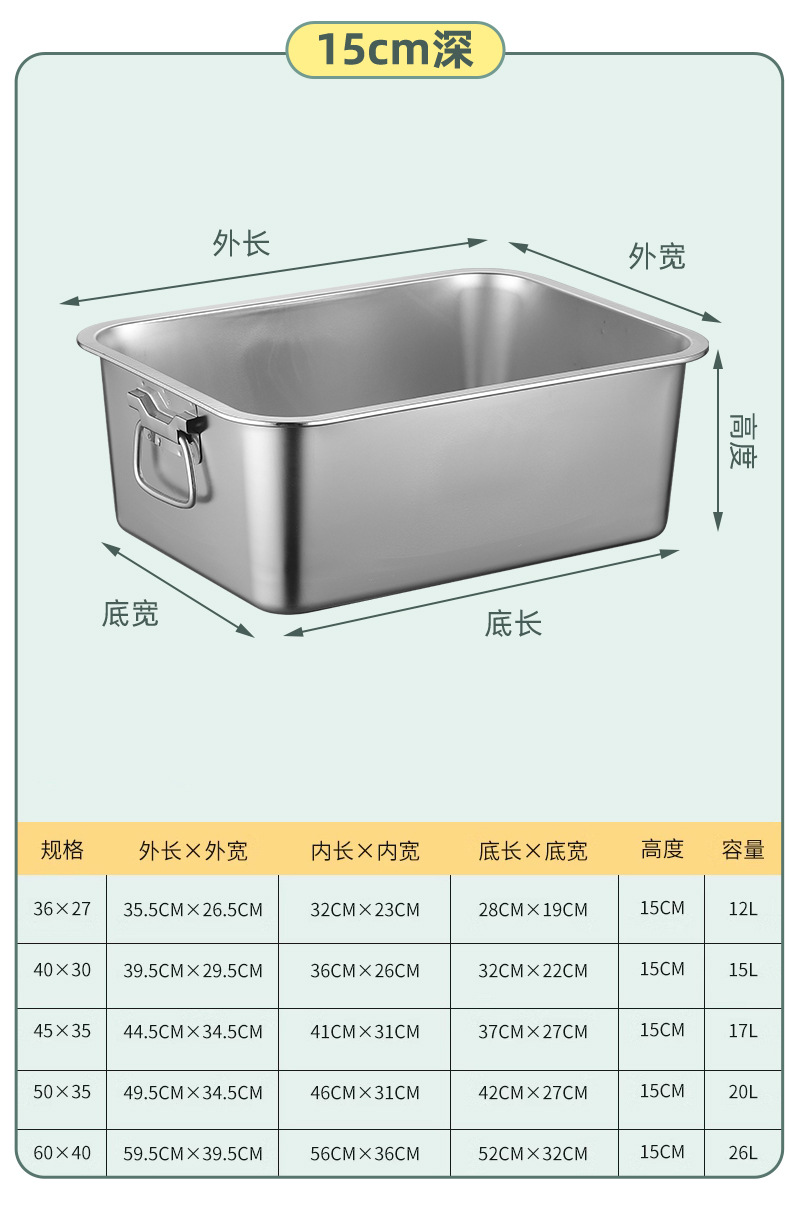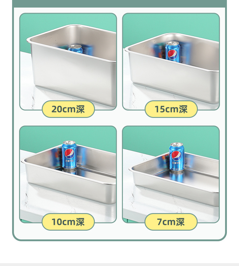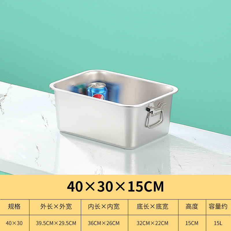 스테인레스 스틸 사각 플레이트 직사각형 트레이 깊은 사각 분지 뚜껑 상자 플랫 바닥 플레이트 상업용 철판 귀 구운 생선 접시스토어 가기