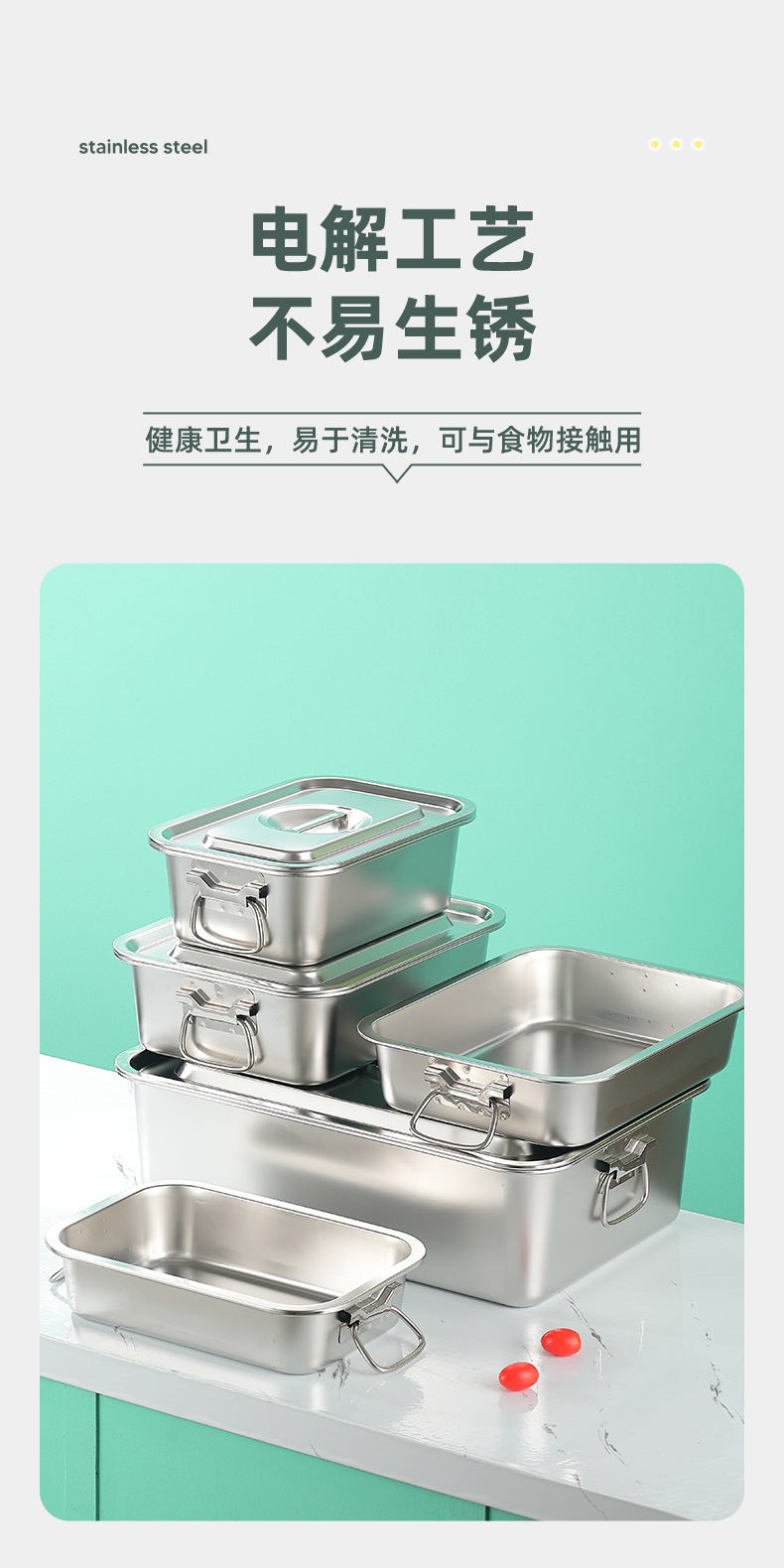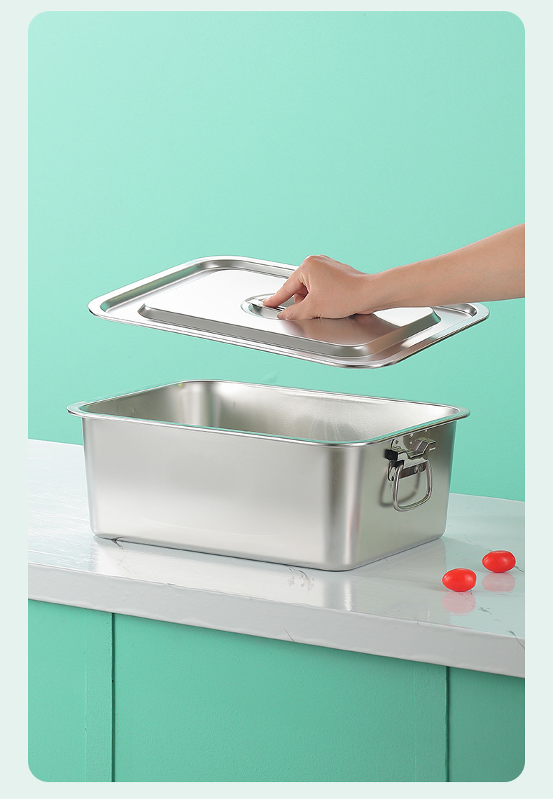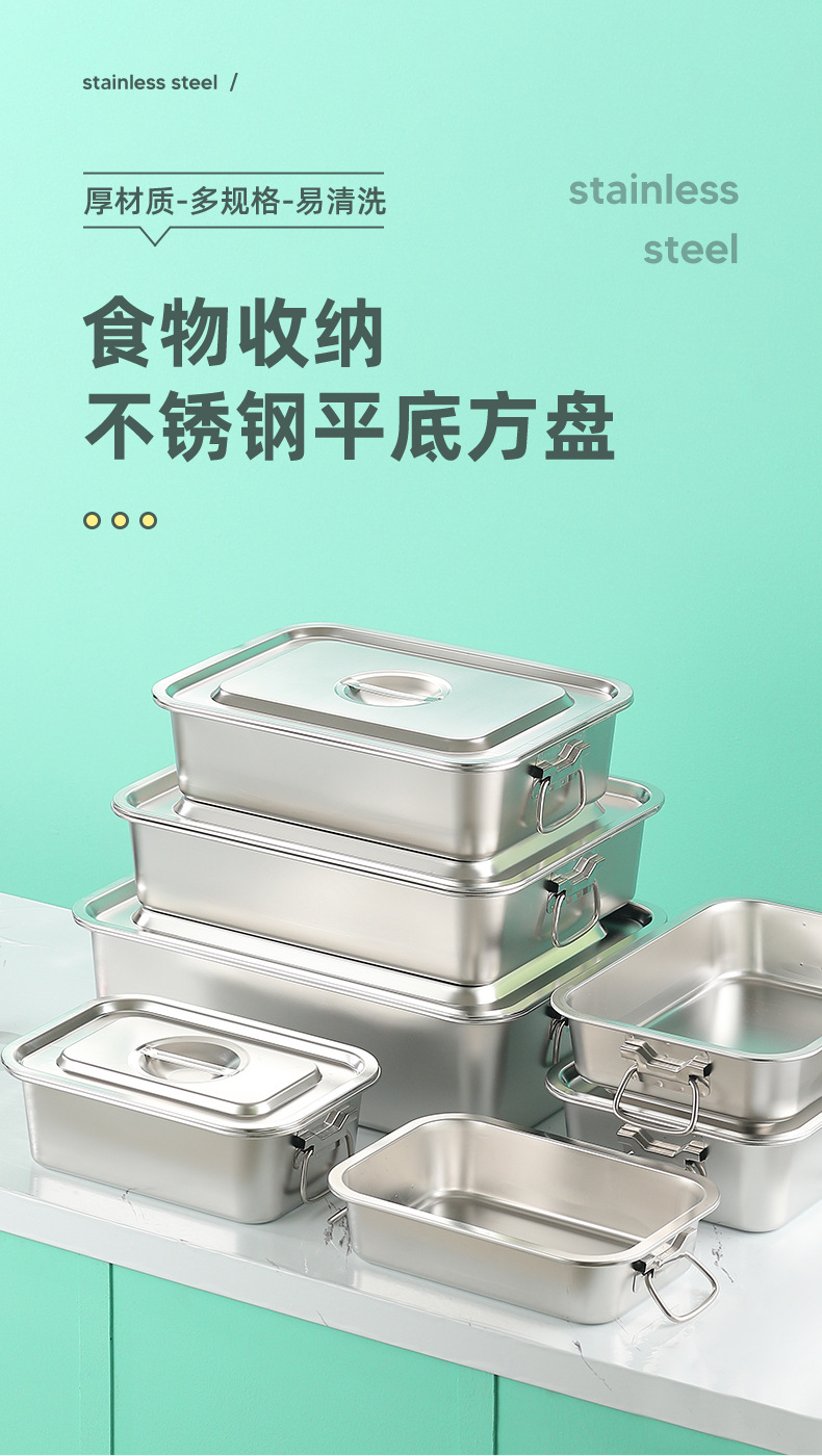 스테인레스 스틸 사각 플레이트 직사각형 트레이 깊은 사각 분지 뚜껑 상자 플랫 바닥 플레이트 상업용 철판 귀 구운 생선 접시