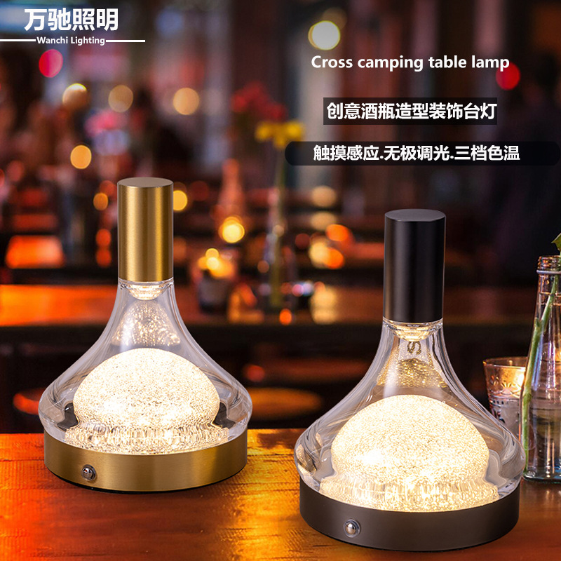 국경 크리 에이 티브 야간 조명 침실 수면 조명 현대 간단한 스타일 와인 병 레스토랑 바 데스크탑 장식 작은 테이블 램프