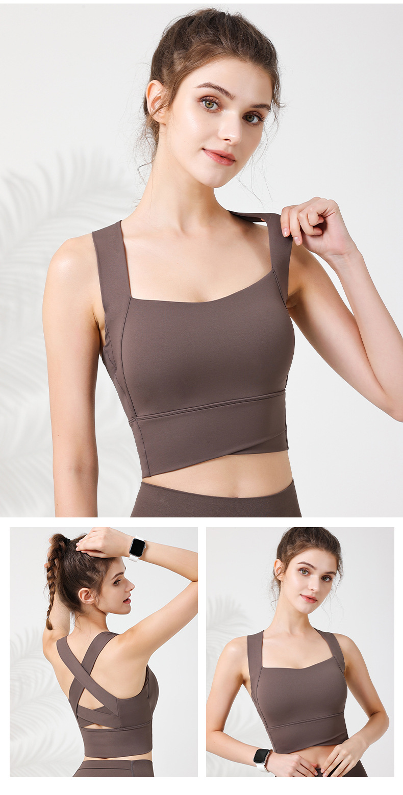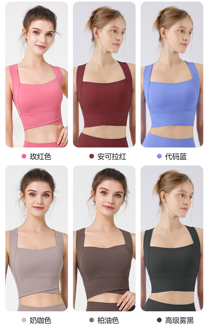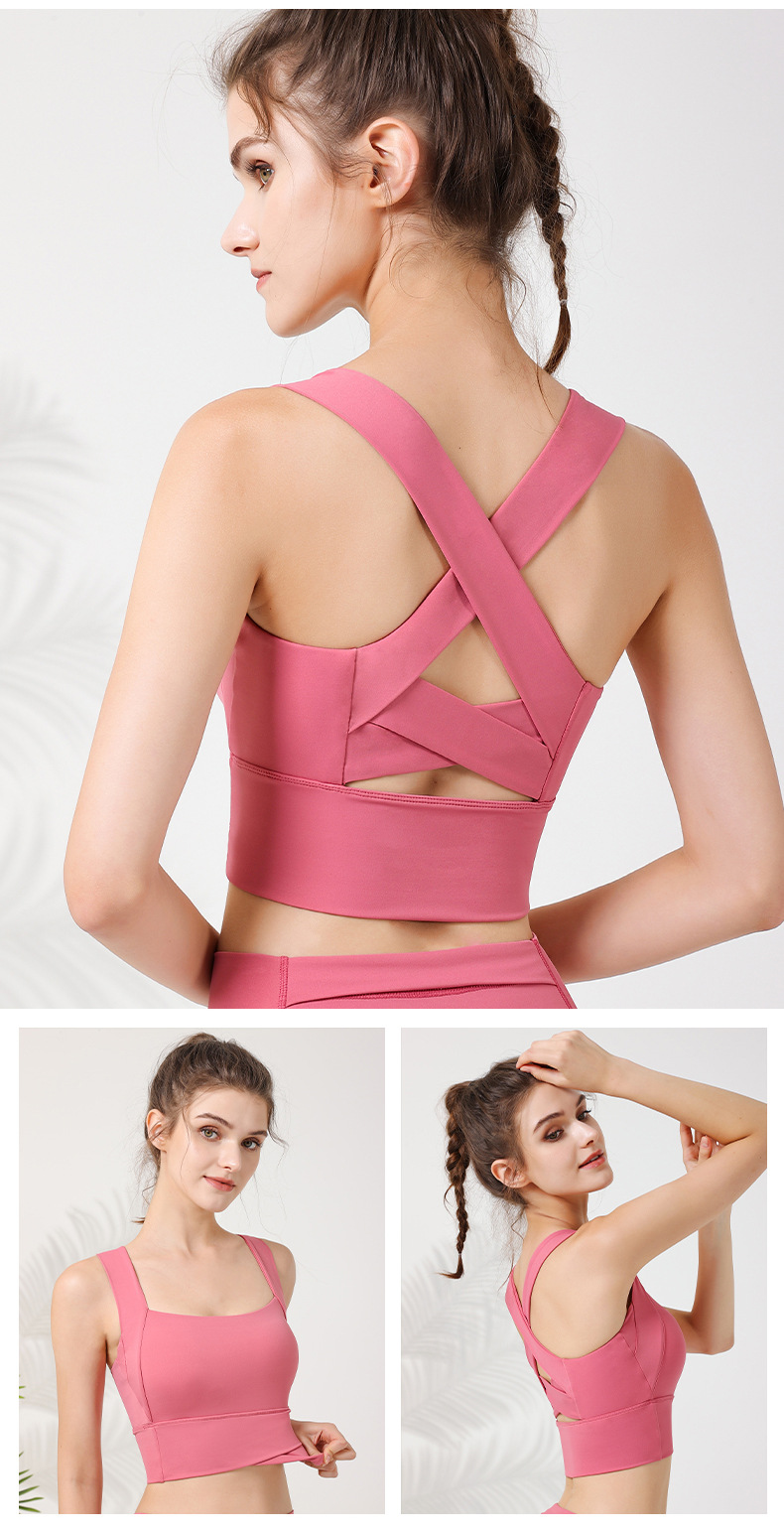 여성용 스포츠 브라, 크로스 충격 방지 와이드 숄더 스트랩, 고정 압력 복부 통기성 피트니스 브라 요가 조끼스토어 가기