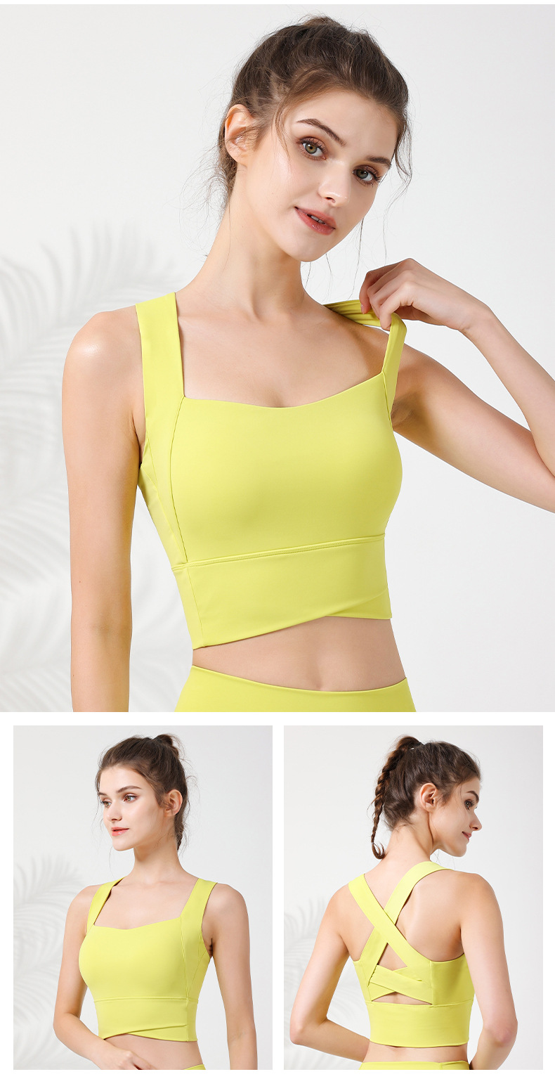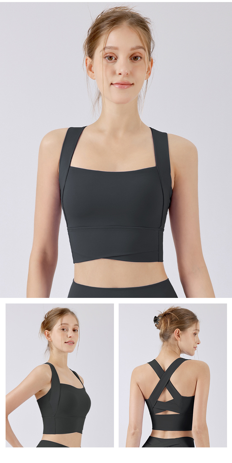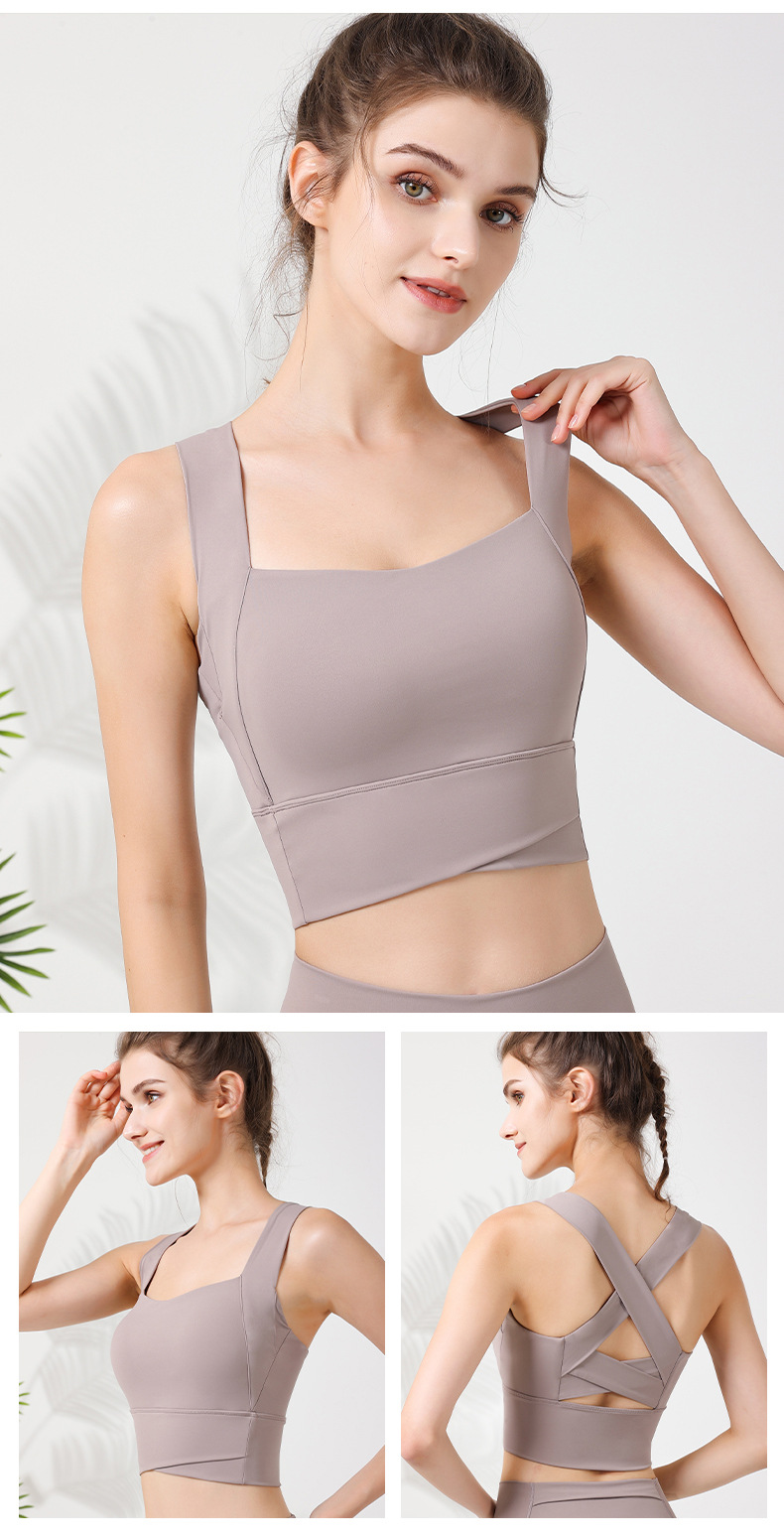 여성용 스포츠 브라, 크로스 충격 방지 와이드 숄더 스트랩, 고정 압력 복부 통기성 피트니스 브라 요가 조끼스토어 가기