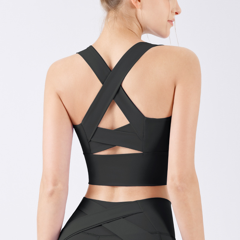 여성용 스포츠 브라, 크로스 충격 방지 와이드 숄더 스트랩, 고정 압력 복부 통기성 피트니스 브라 요가 조끼