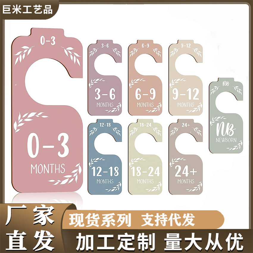 국경을 넘는 즉시 배송 아기 분류 태그 옷장 8개 세트 디지털 정리함 컬러 양면 아기 성장 기록 나무 태그스토어 가기