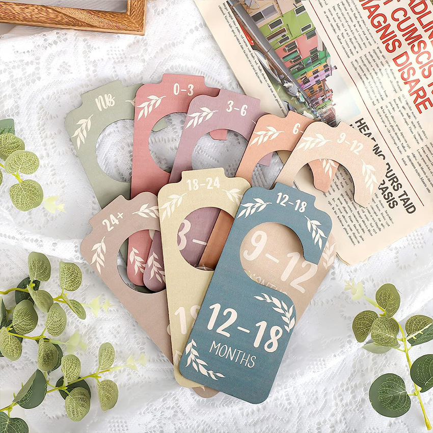 국경을 넘는 즉시 배송 아기 분류 태그 옷장 8개 세트 디지털 정리함 컬러 양면 아기 성장 기록 나무 태그
