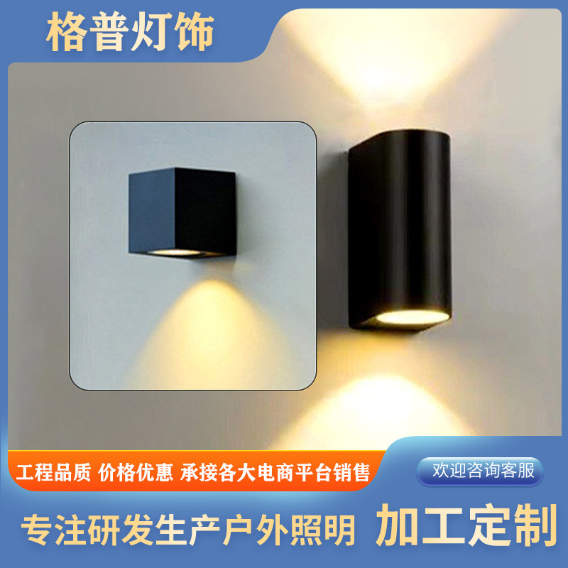 벽 램프 야외 방수 더블 헤드 위아래로 빛나는 광전 안뜰 복도 반원형 사각형 플라스틱 쉘 램프스토어 가기
