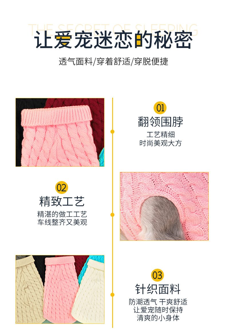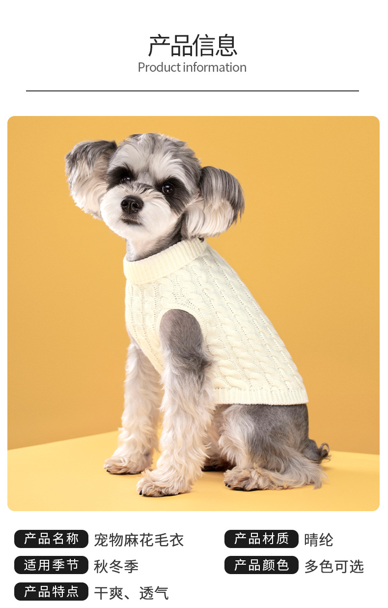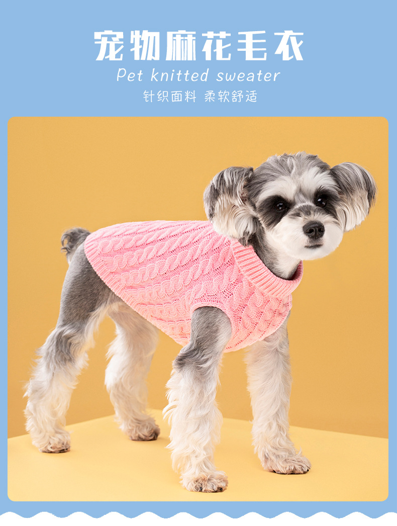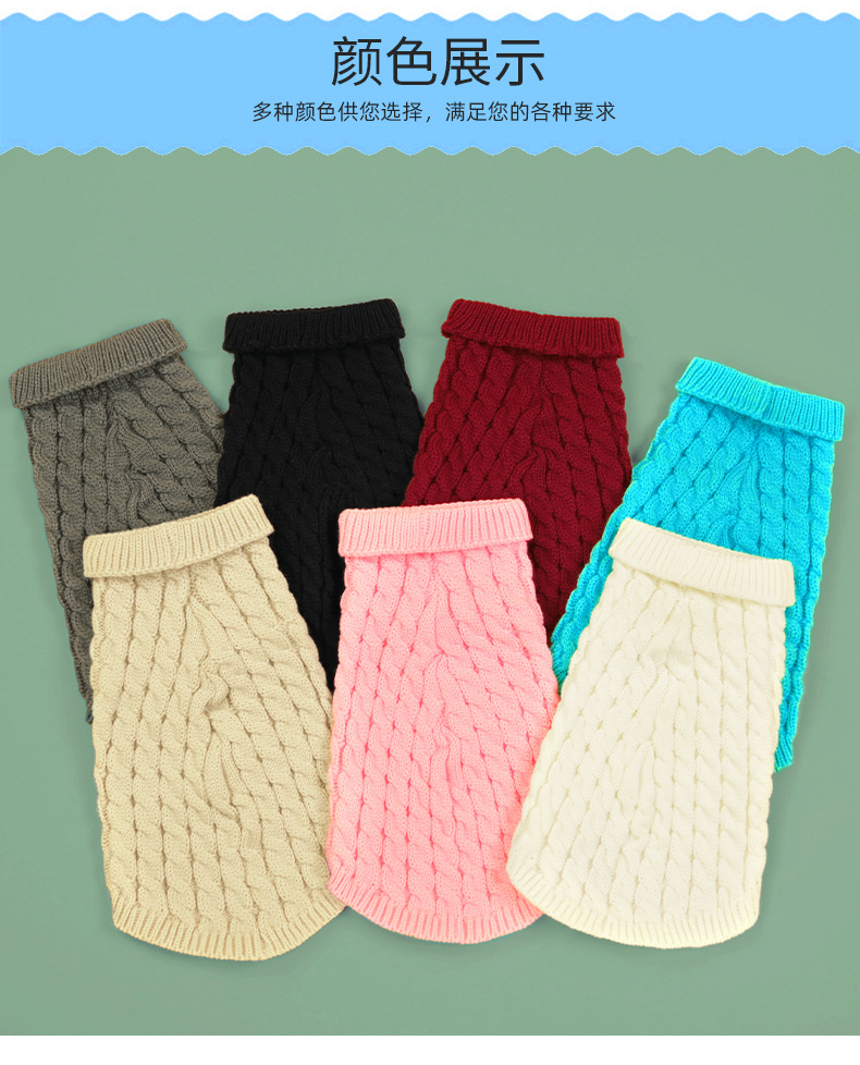 패션 스웨터 가을과 겨울 새로운 개 귀여운 애완 동물 옷 단색 트위스트 니트 풀오버 따뜻한 의류 편안한