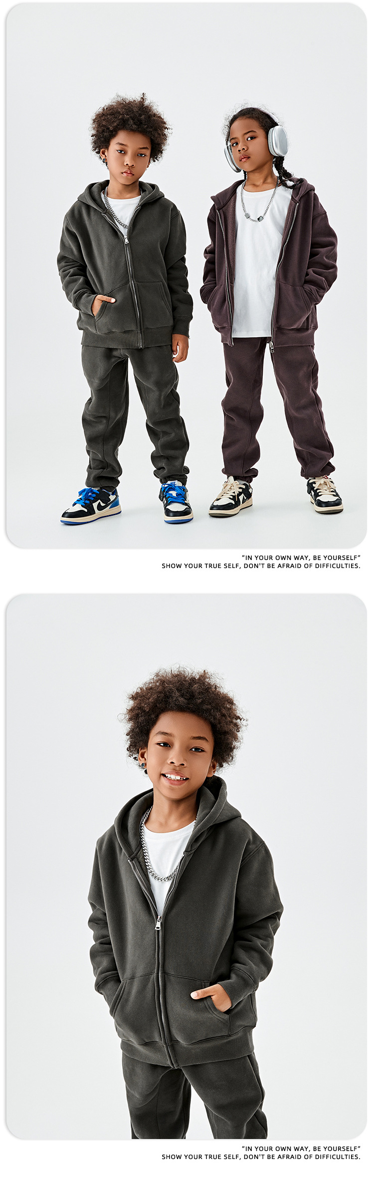 틸라니 아동복 2025 봄 가을 그레이 시리즈 350G 플리스 스웨트팬츠 2.0 남녀 아동용 바지 트렌디 브랜드