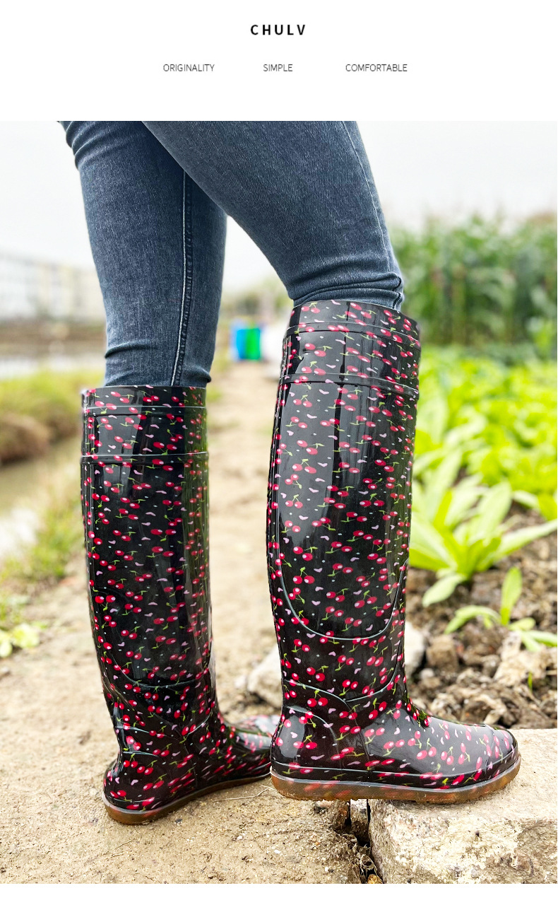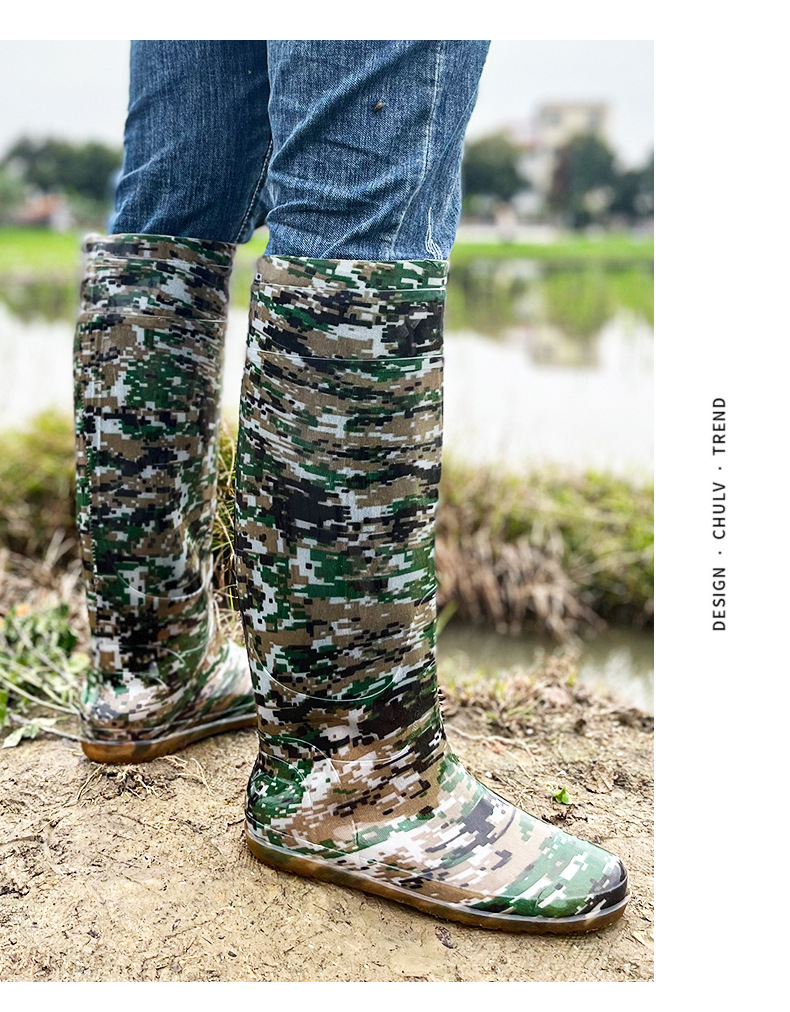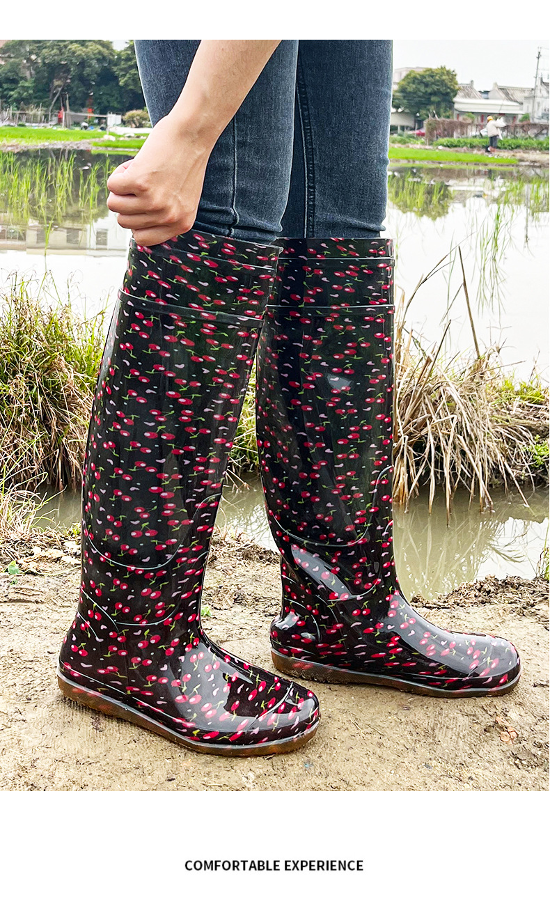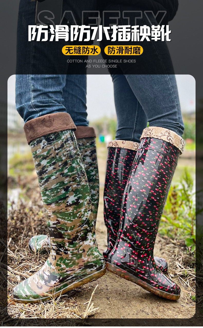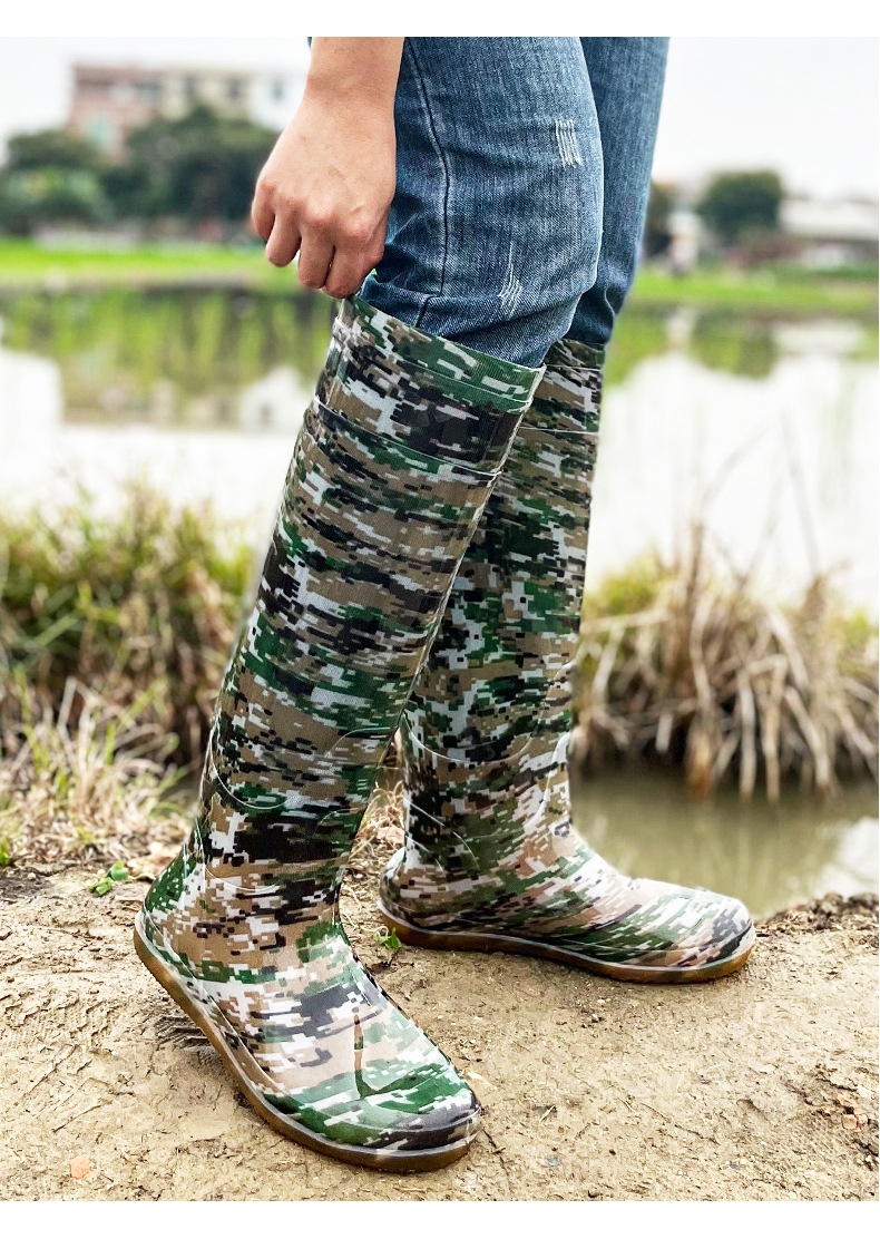 새로운 남성과 여성의 무릎 높이 튜브 이식 신발 소프트 플랫 레인 부츠 패디 신발 진흙 양말 쇠고기 힘줄 물 오버 슈즈 도매