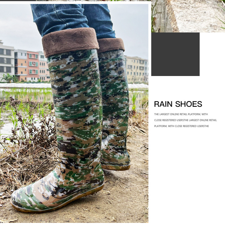새로운 남성과 여성의 무릎 높이 튜브 이식 신발 소프트 플랫 레인 부츠 패디 신발 진흙 양말 쇠고기 힘줄 물 오버 슈즈 도매스토어 가기