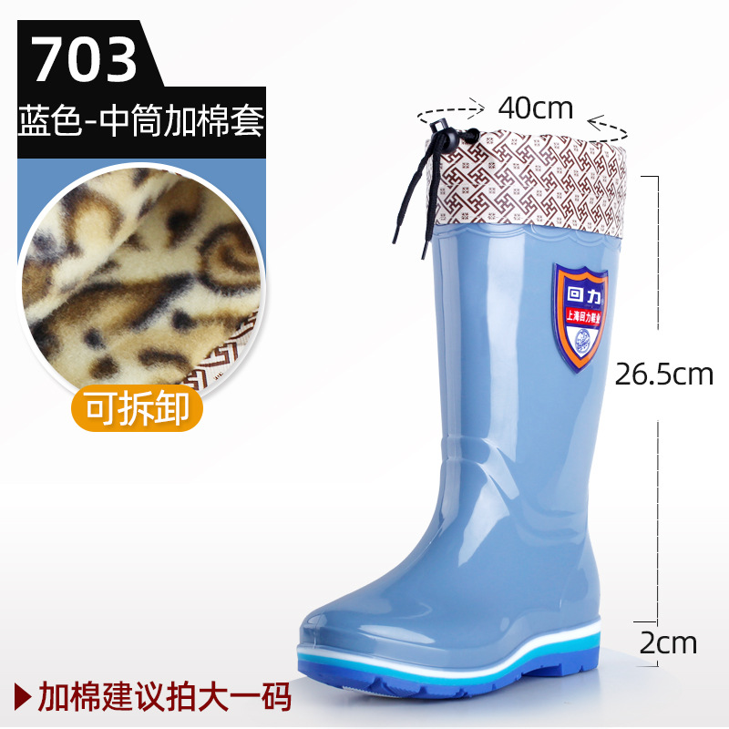 703 레인부츠 여성용 하이탑 고무신 두꺼운 면부츠 패션 방한 워터슈즈 미끄럼 방지 플러스 벨벳 레인부츠 방수스토어 가기