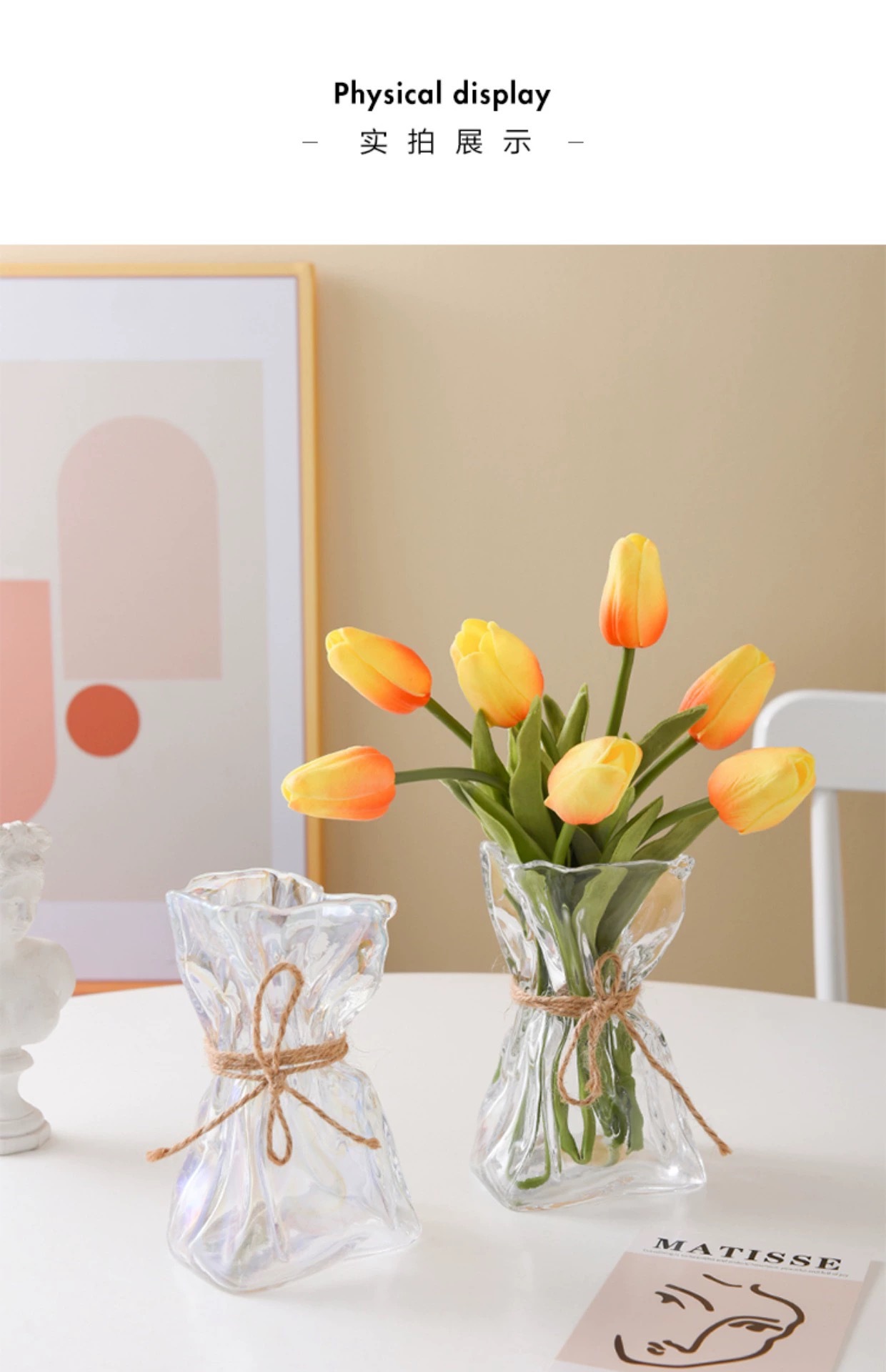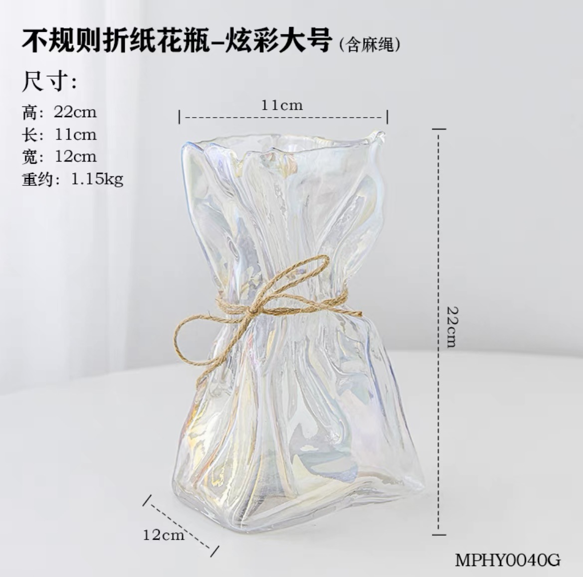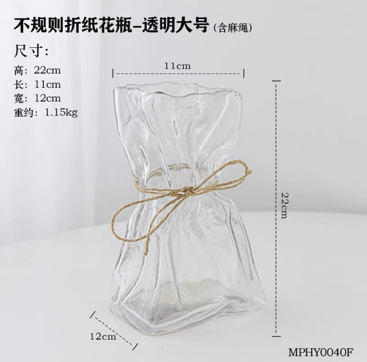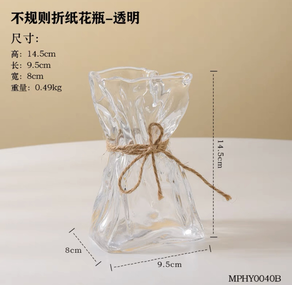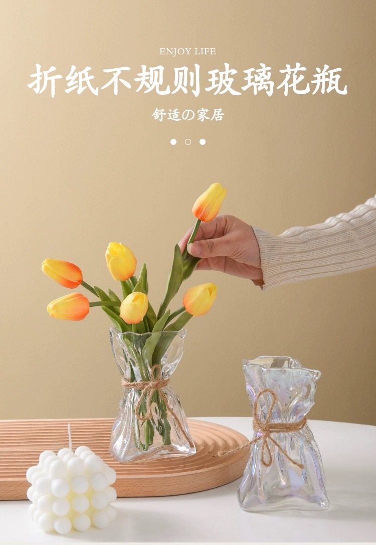 북유럽 인 스타일 종이 접기 크리 에이 티브 유리 꽃병 거실 수경 꽃병 홈스테이 장식 공예 장식품