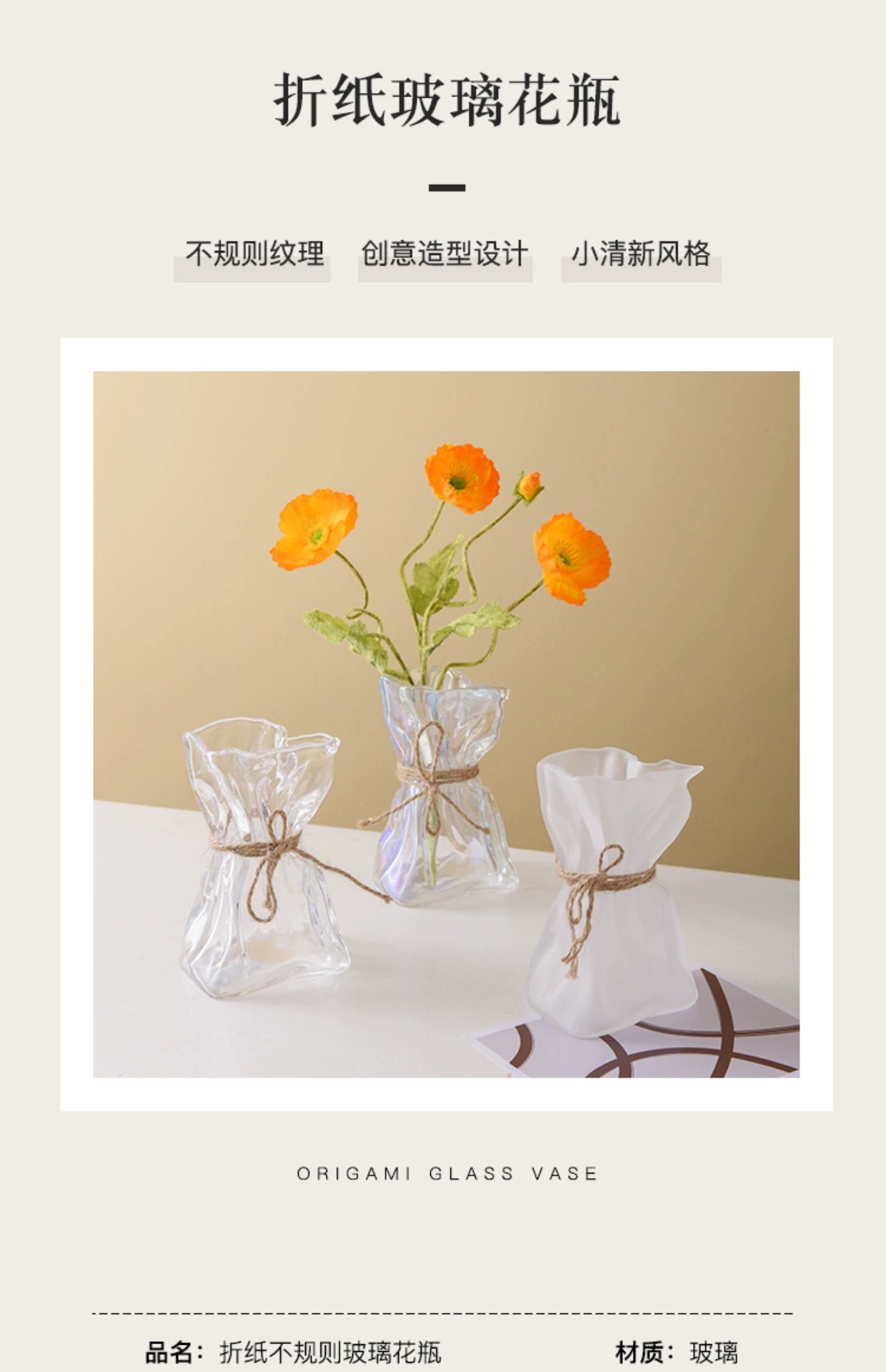 북유럽 인 스타일 종이 접기 크리 에이 티브 유리 꽃병 거실 수경 꽃병 홈스테이 장식 공예 장식품스토어 가기