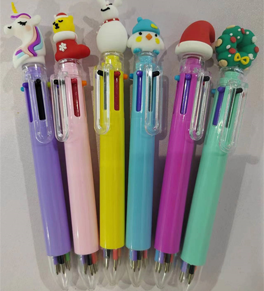 컬러 6 색 볼펜 만화 귀여운 학생 컬러 마크 프레스 멀티 컬러 펜 6 색 펜스토어 가기