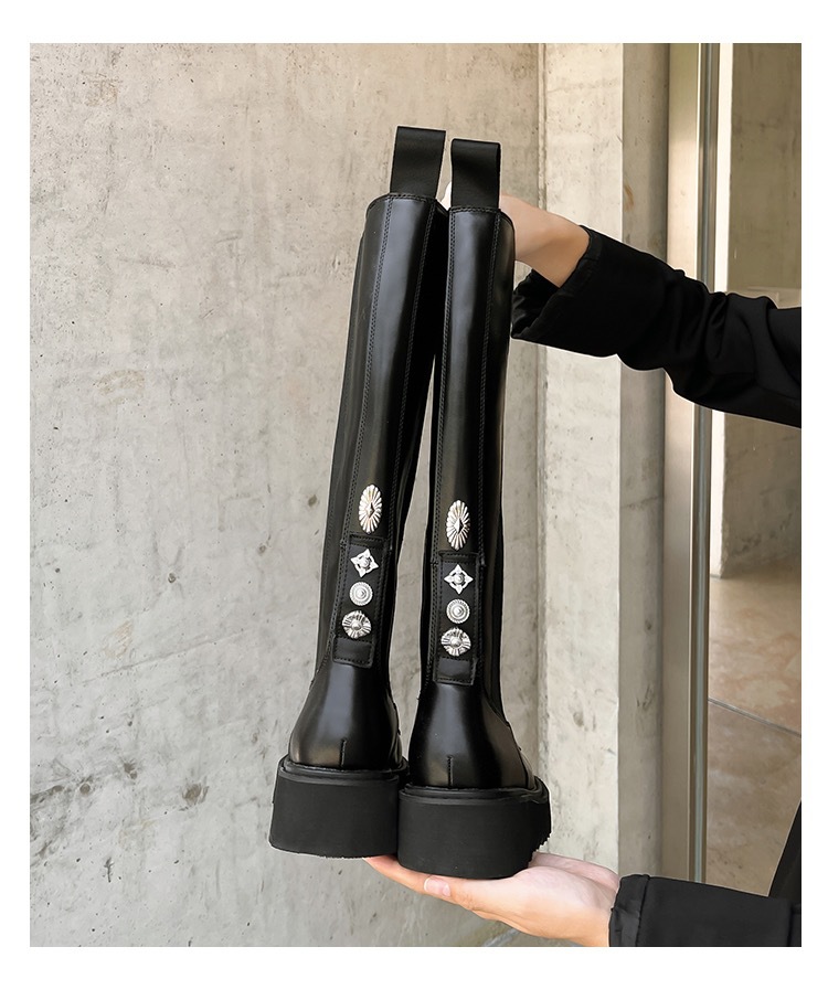 나이트 부츠 부츠 부츠 여성의 새로운 높은 튜브 굴뚝 첼시 부츠 두꺼운 바닥 부츠 두꺼운 다리 봄과 가을스토어 가기