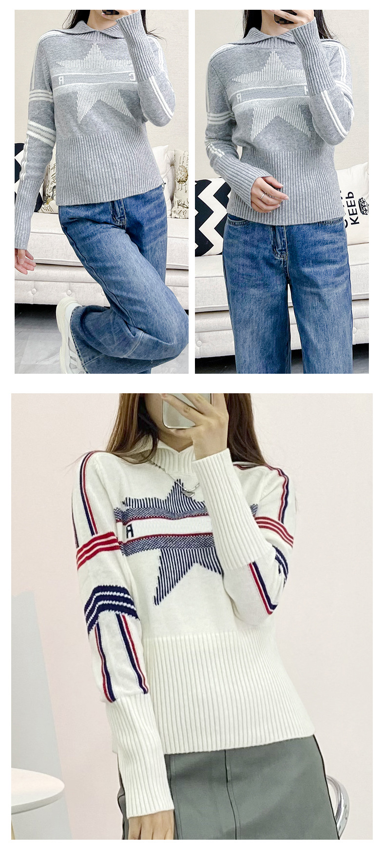 2024 가을, 겨울 D 홈 스웨터 풀오버 럭키 스타 인기 캐시미어 스웨터 스키 슈트 탑 여성 니트 긴 소매
