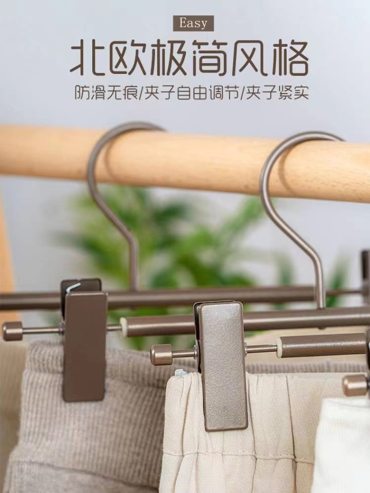 금속 바지 랙 두꺼운 바지 클립 다기능 텔레스코픽 습식 및 건식 미끄럼 방지 바지 걸이 강력한 추적 스테인리스 스틸 클립