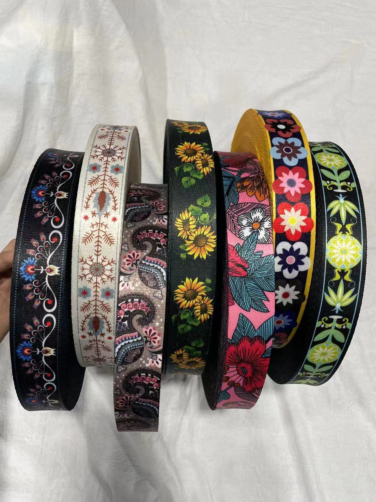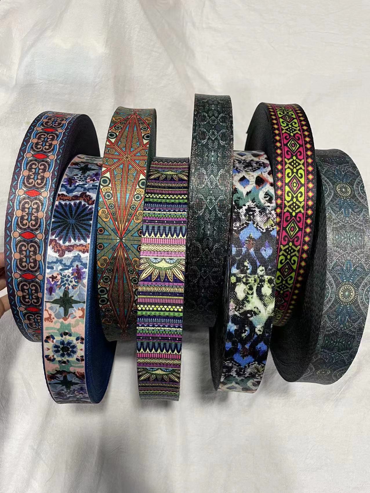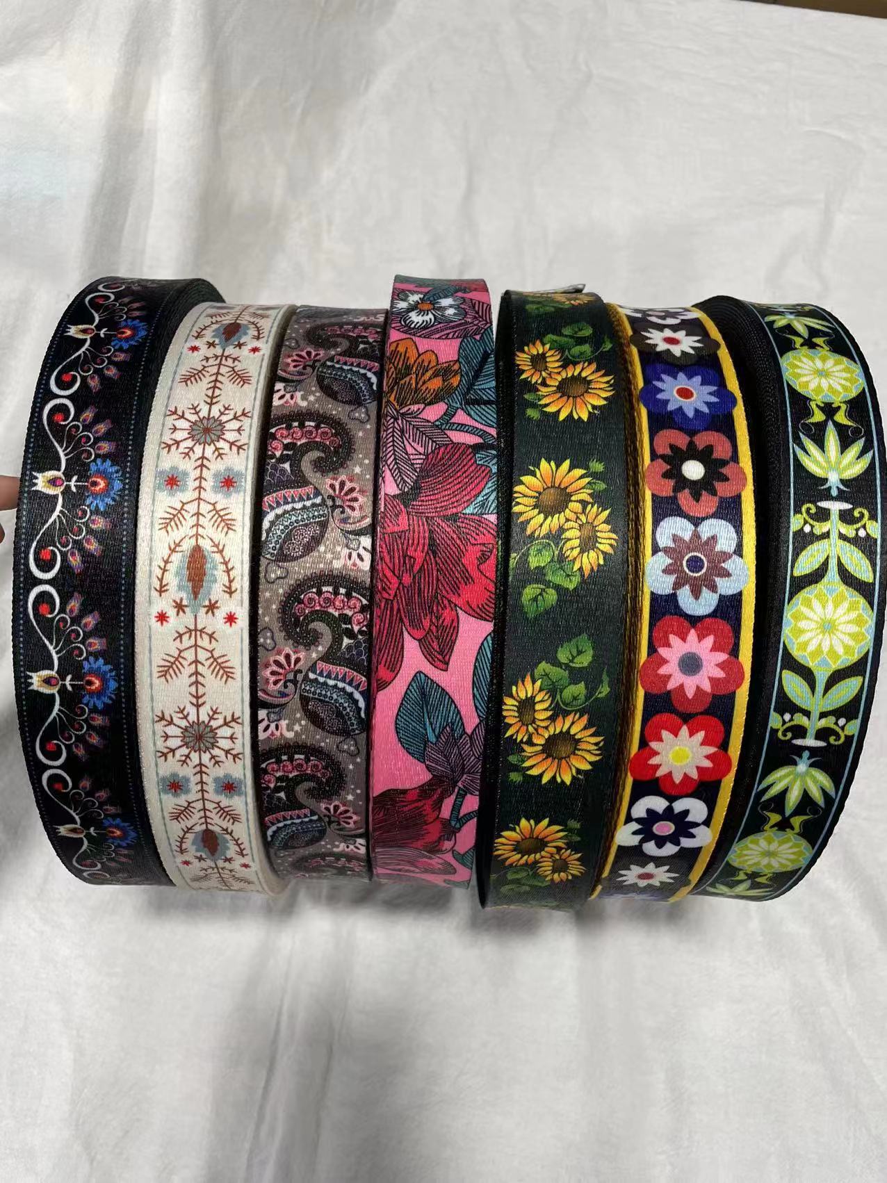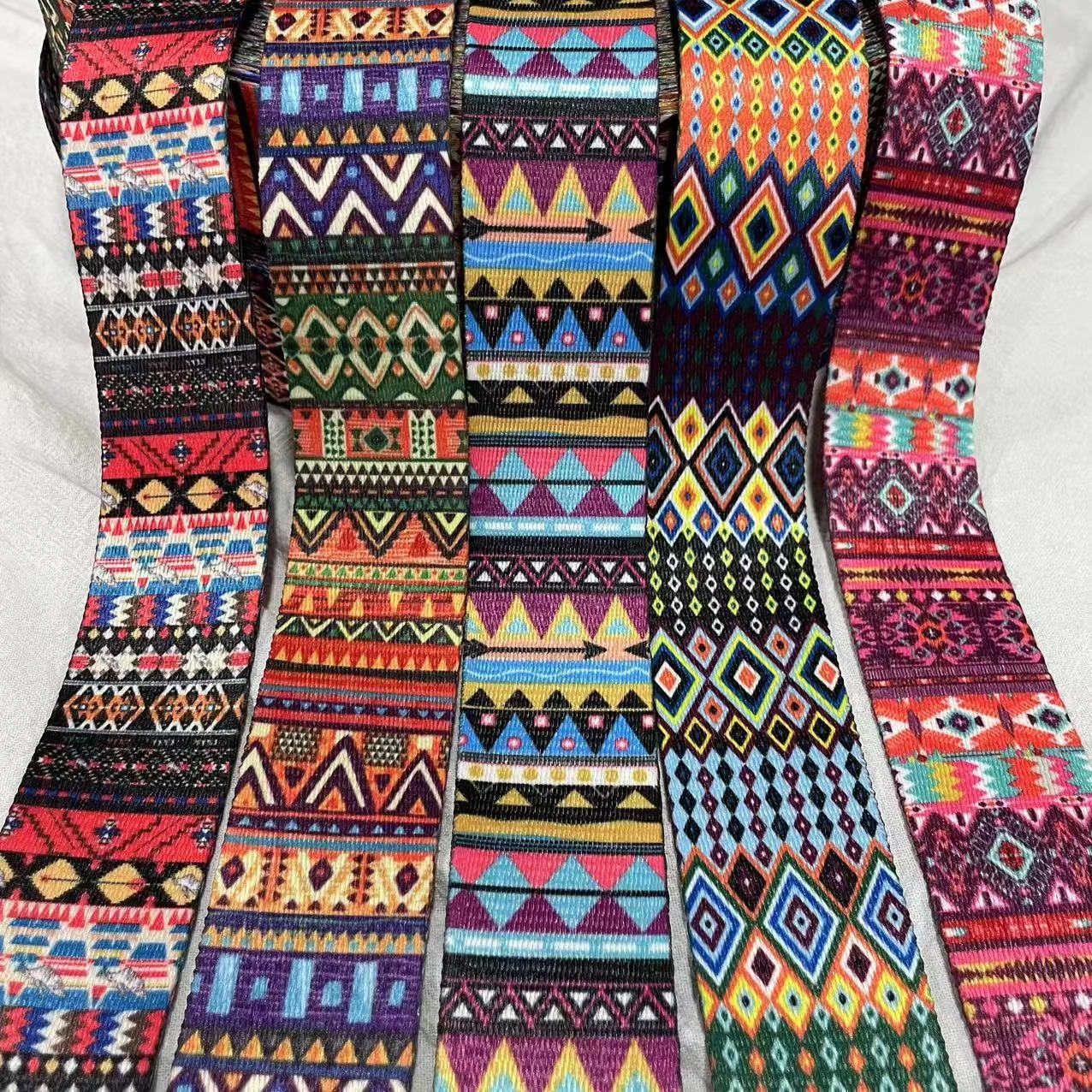 열전달 플라워 벨트 폴리에스터 네트워크 실크 에스닉 자카드 디지털 인쇄 리본 가방 숄더 스트랩 커튼 팩