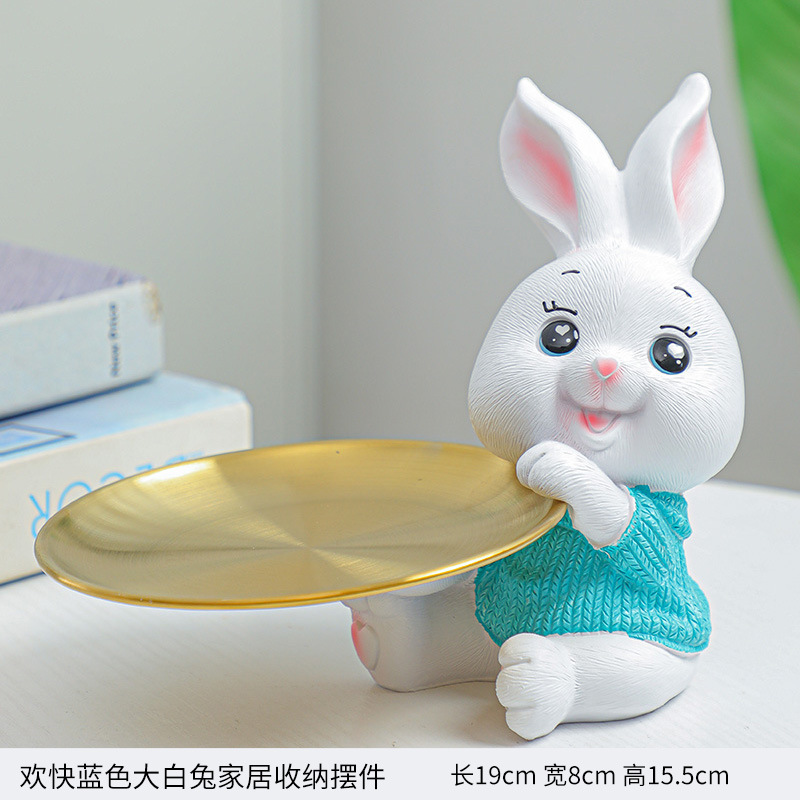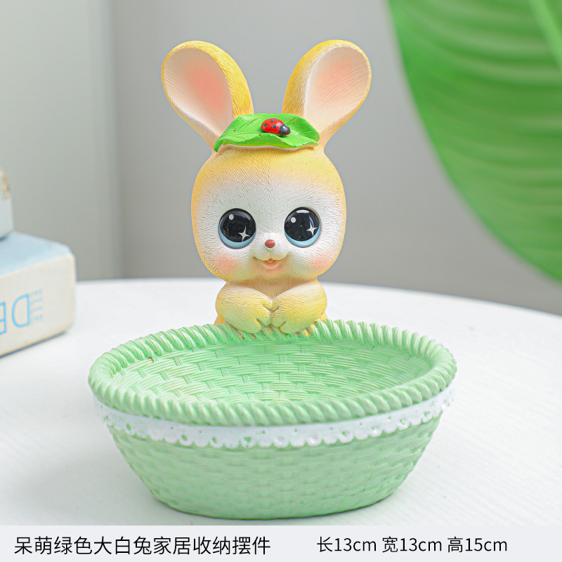 • 쾌활한 녹색 흰색 토끼 보관 장식품