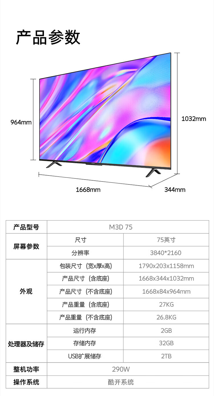 Skyworth TV 75A3D 2023 75 "32GB 대용량 메모리 원거리 음성 4K HD 지혜 종합스토어 가기