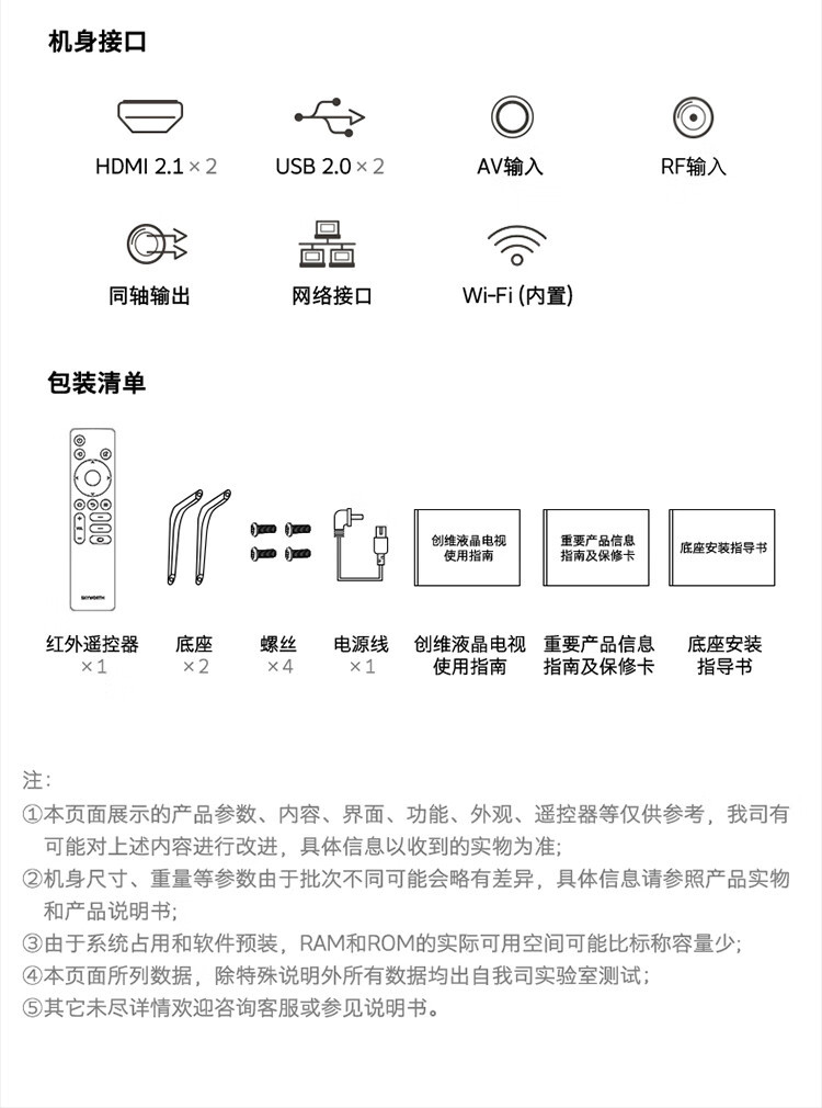Skyworth TV 75A3D 2023 75 "32GB 대용량 메모리 원거리 음성 4K HD 지혜 종합