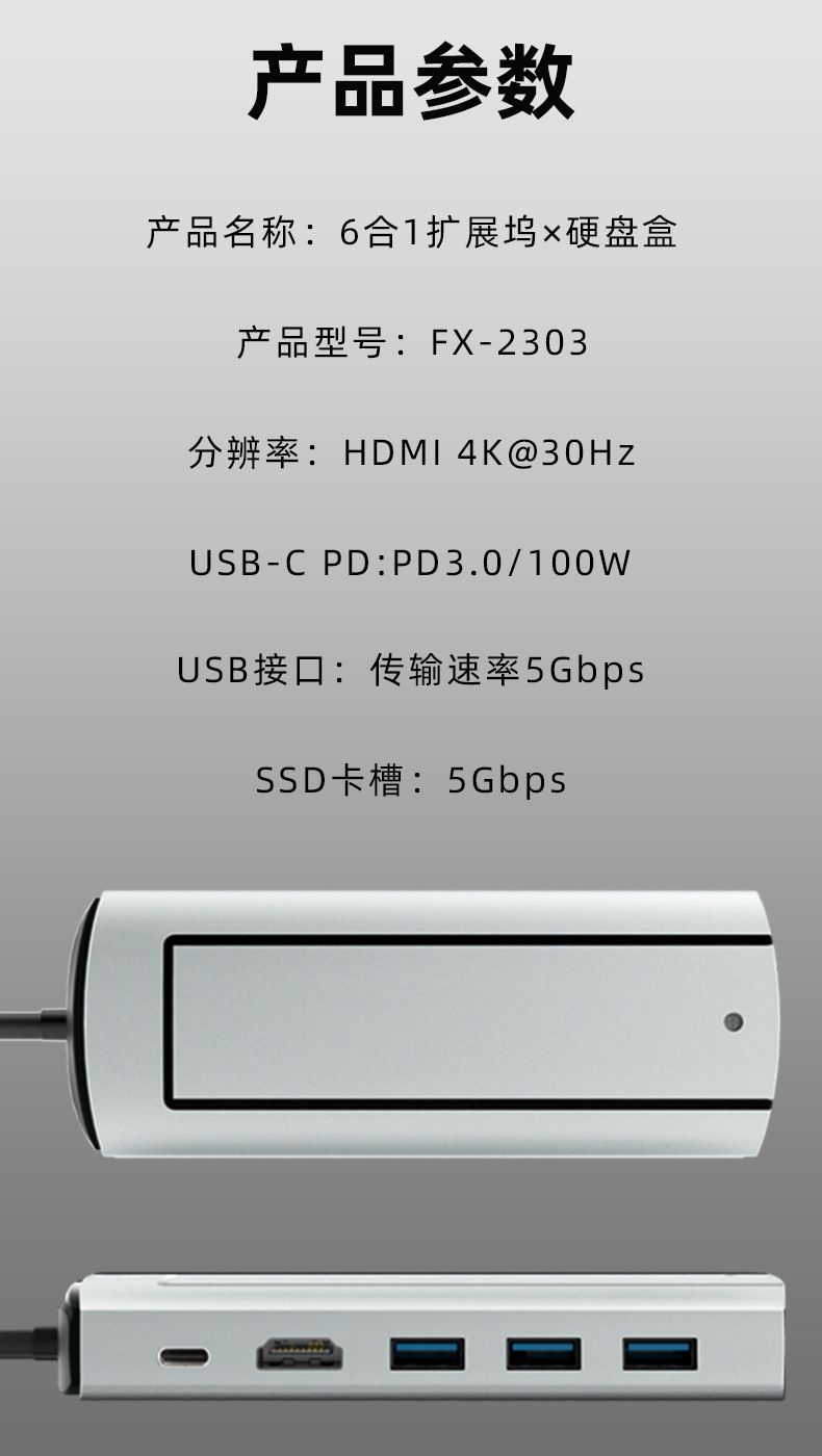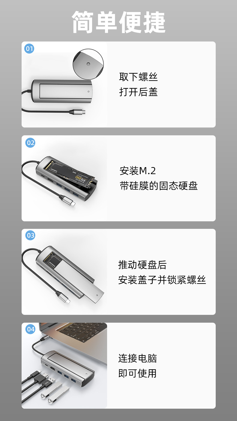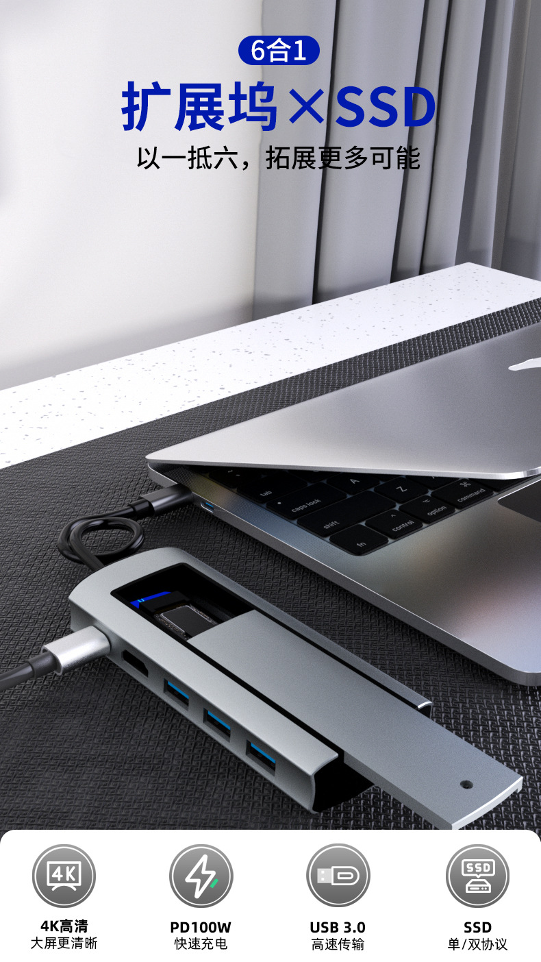 크로스보더 타입-C 확장 도크 USB 허브 다기능 허브 SSD M.2 모바일 하드 드라이브 박스 확장 도크