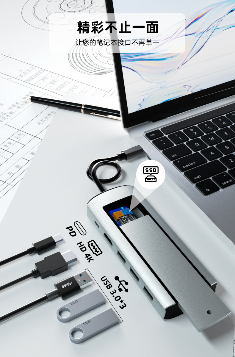 크로스보더 타입-C 확장 도크 USB 허브 다기능 허브 SSD M.2 모바일 하드 드라이브 박스 확장 도크스토어 가기