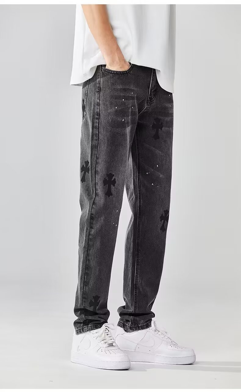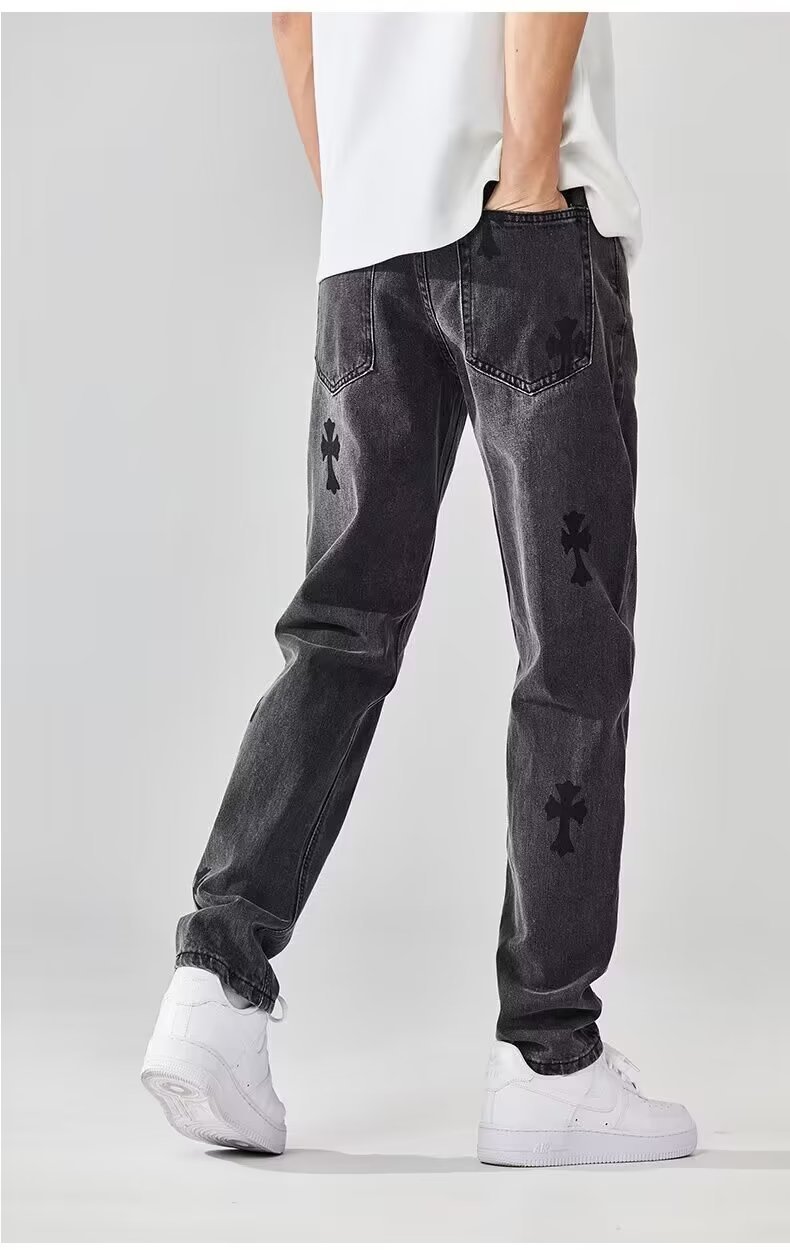 여름 얇은 청바지 남성용 라이트 블루 크로스 스트레이트 루즈한 트렌디 브랜드 라이트 컬러 캐주얼 하이 스트리트 팬츠
