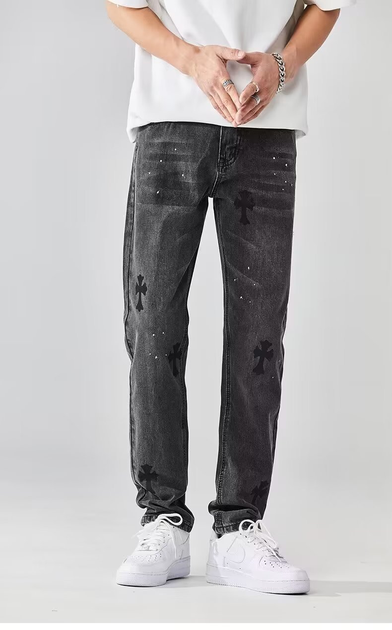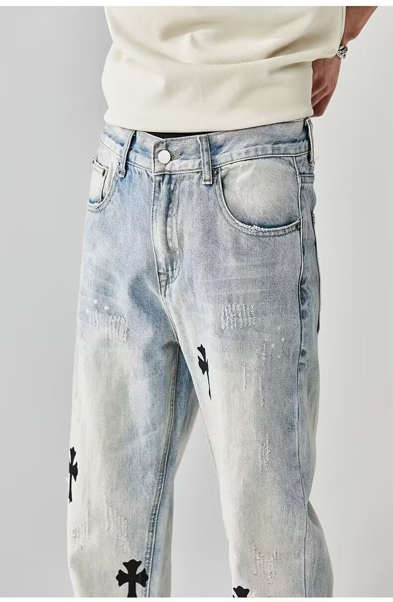 여름 얇은 청바지 남성용 라이트 블루 크로스 스트레이트 루즈한 트렌디 브랜드 라이트 컬러 캐주얼 하이 스트리트 팬츠스토어 가기