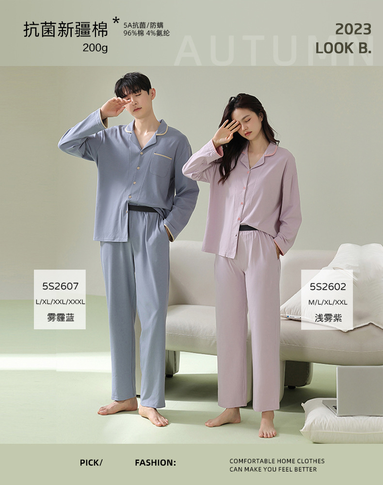 [항균면] 클래스 A 안티 진드기 및 정균 잠옷 여자의 봄과 가을 순면 커플 잠옷 남자의 가정복 세트