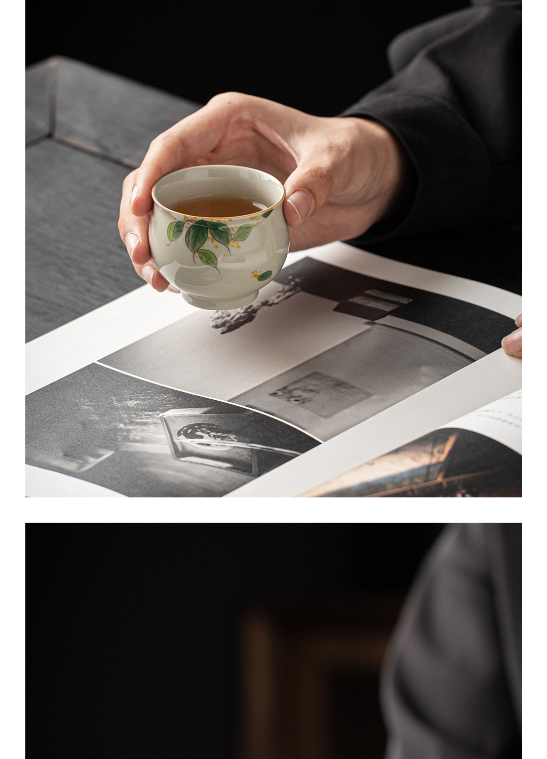 오래된 유약 내레이션 손으로 그린 오스만 투스 찻잔 가정용 세라믹 차 시음 컵 개인 마스터 컵 싱글 멜트 컵