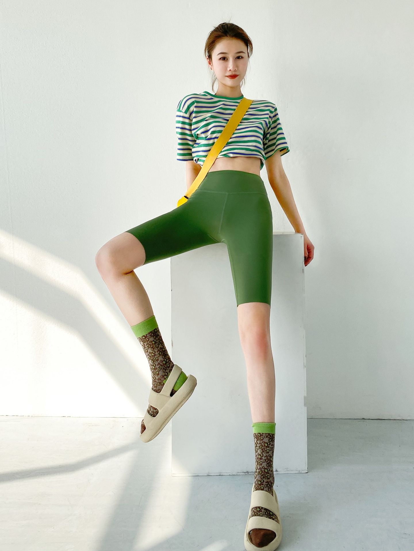 사랑의 항아리 여름 코튼 스트라이프 반팔 통기성 짧은 허리 티셔츠 바지 슬림 탑스토어 가기