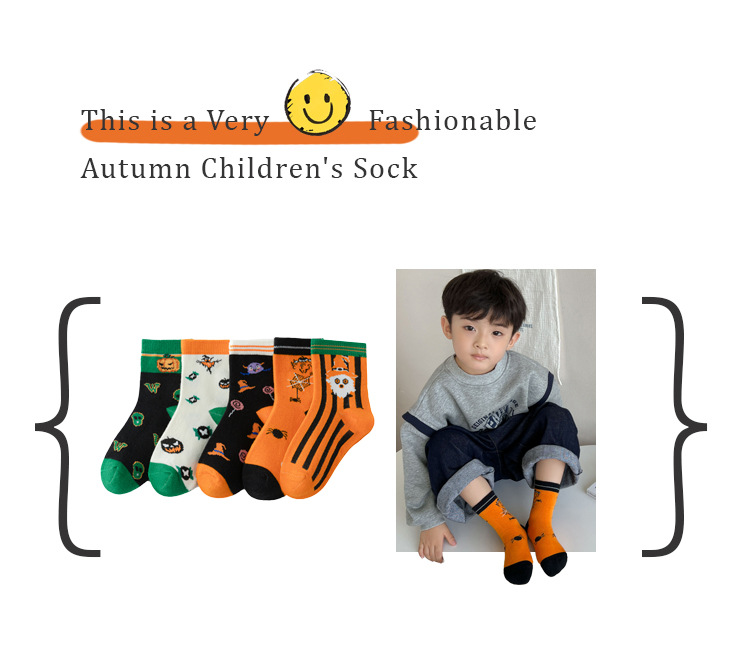 할로윈 어린이 양말 도매 봄 가을 만화 면 양말 남녀 공용 트렌디한 가을 겨울 한국 스타일 중간 길이 양말