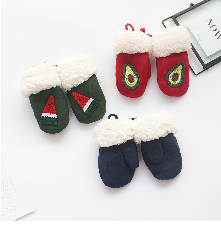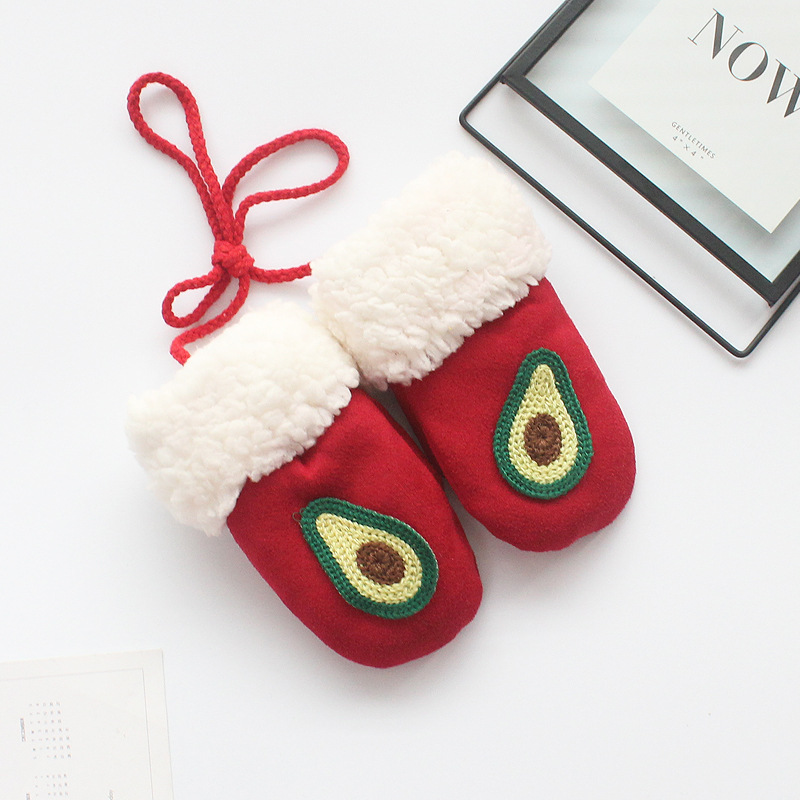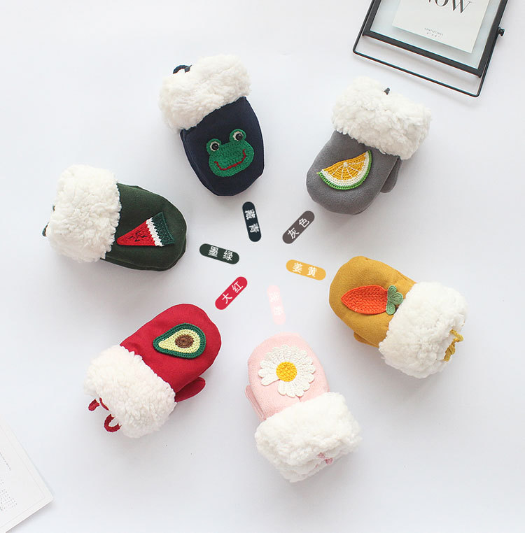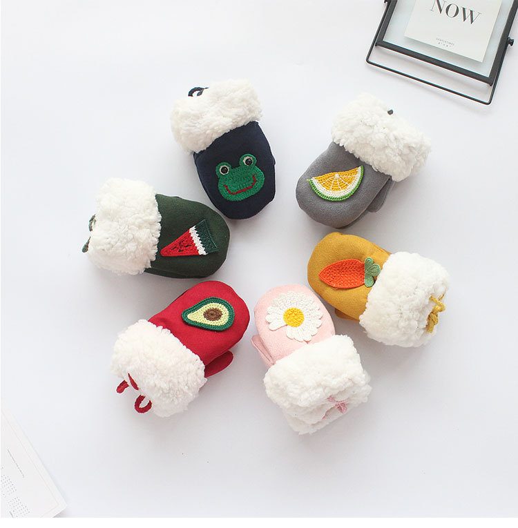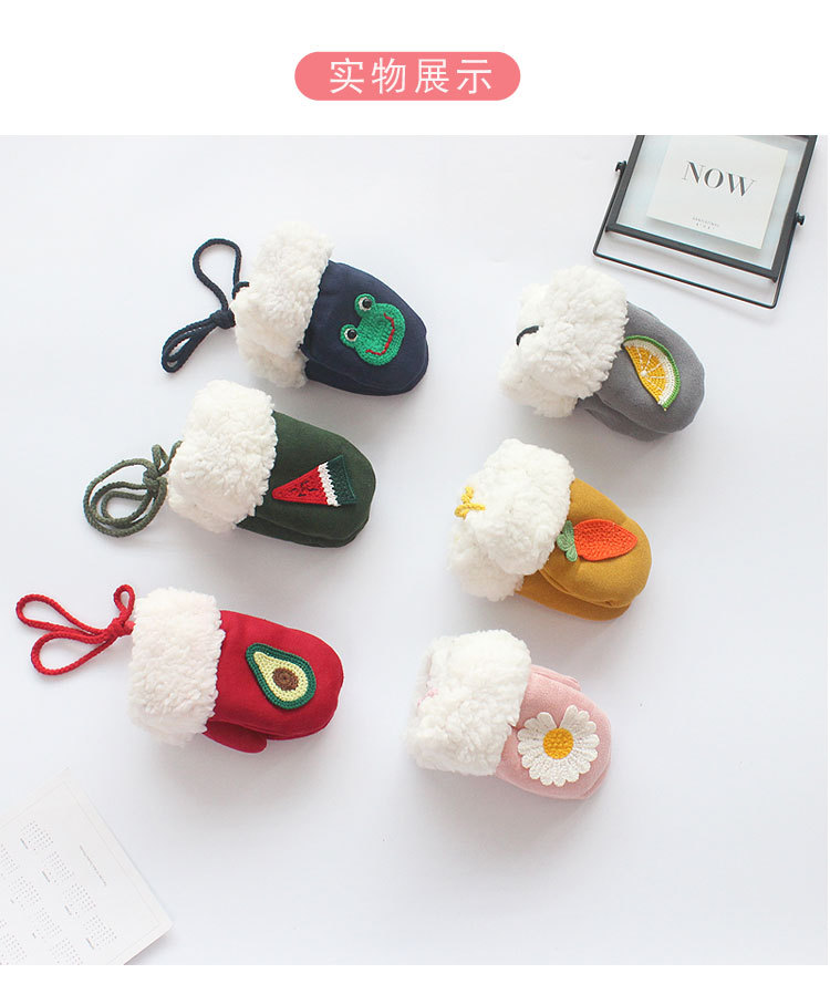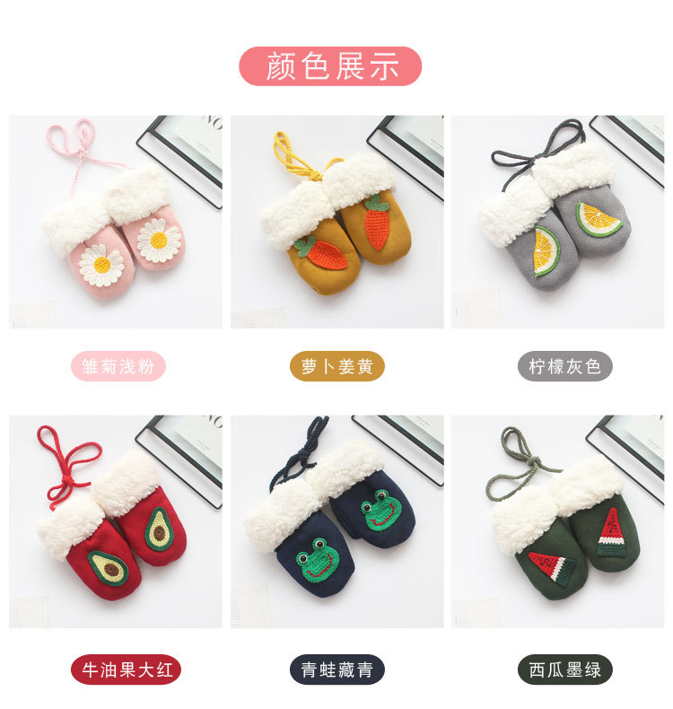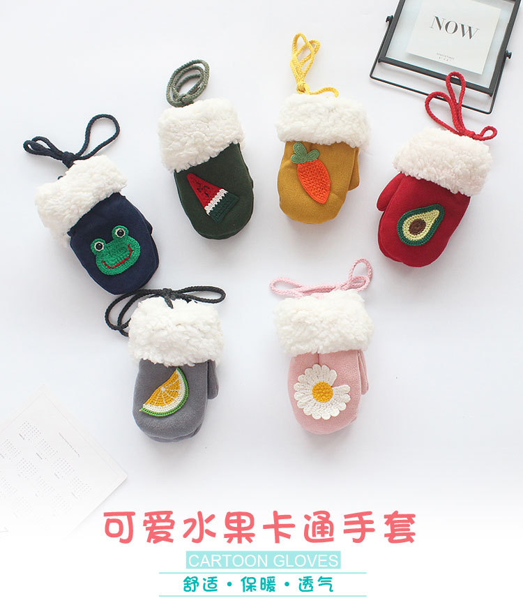 가을과 겨울 어린이 장갑 소년 기모 야외 따뜻한 장갑 아기 소녀 목 매달려 어린이 만화 과일 장갑