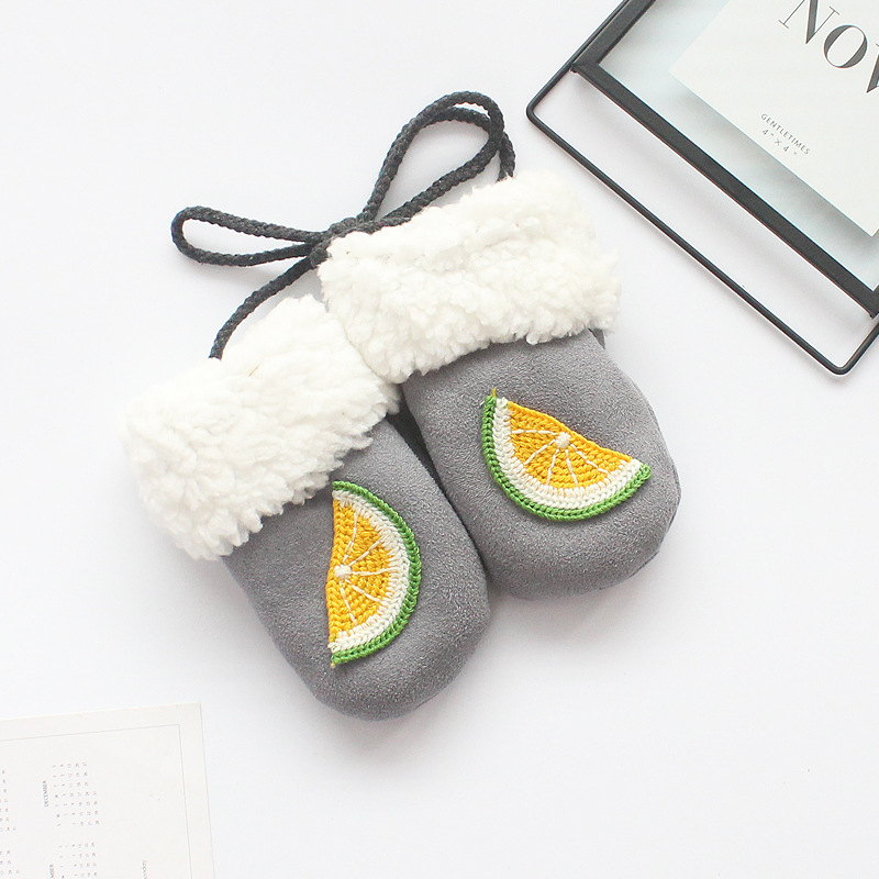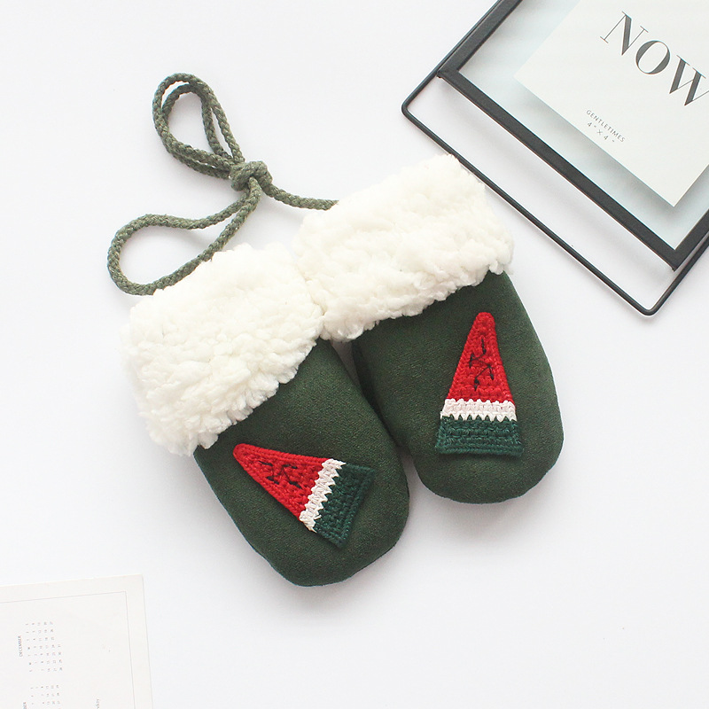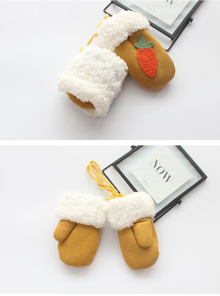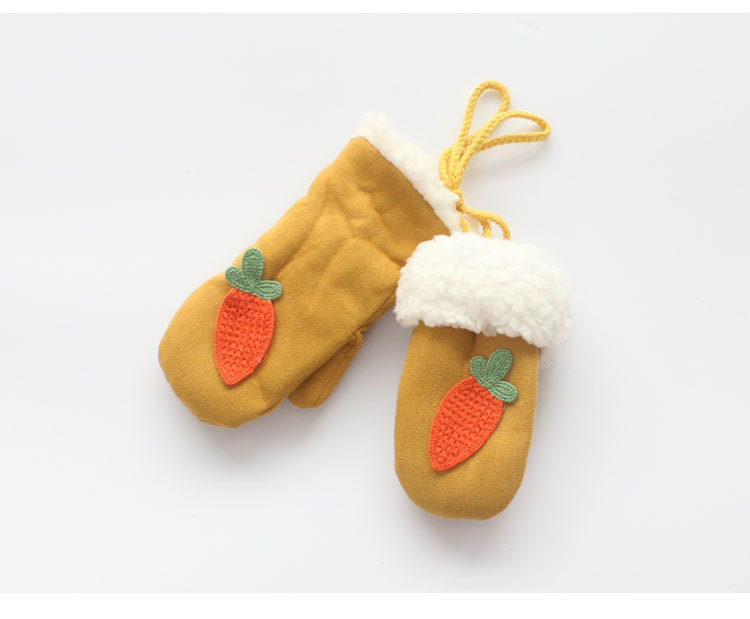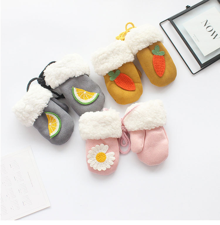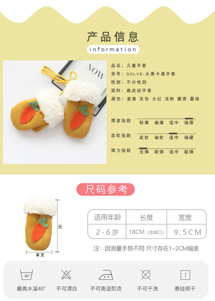 가을과 겨울 어린이 장갑 소년 기모 야외 따뜻한 장갑 아기 소녀 목 매달려 어린이 만화 과일 장갑