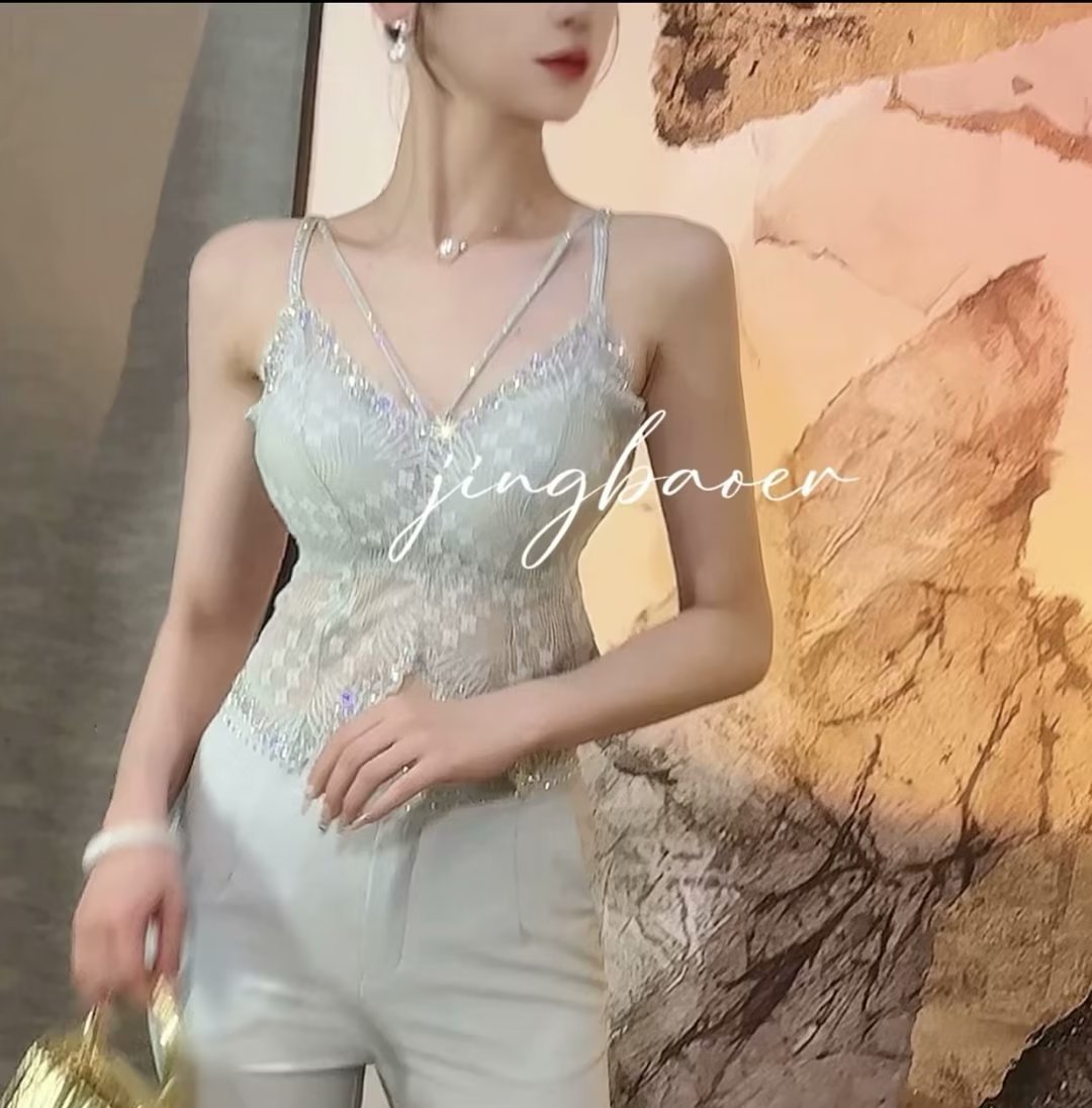 새로운 라이브 폭발 라인 석 레이스 인테리어 여성의 고급 감각 고정 코스터 아름다운 등 섹시 패션 슬림 여성 의류
