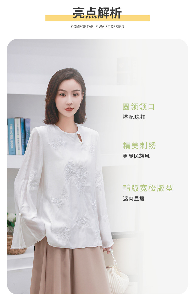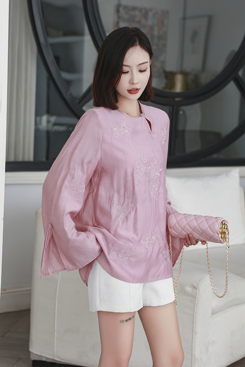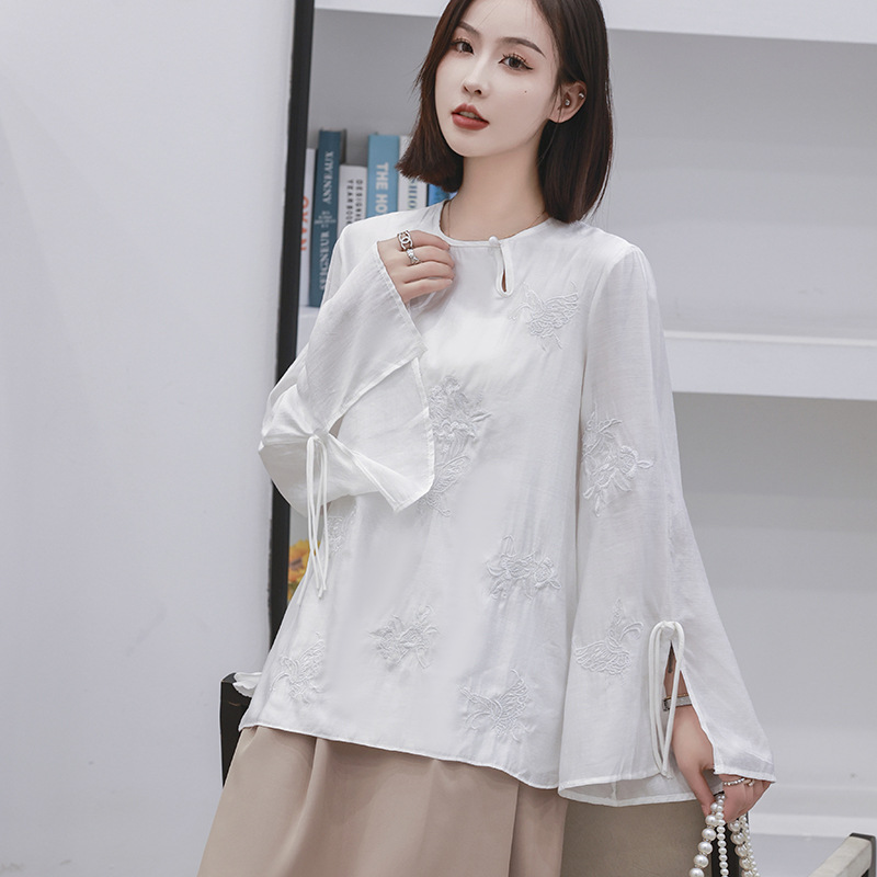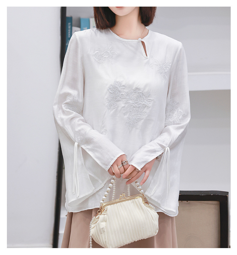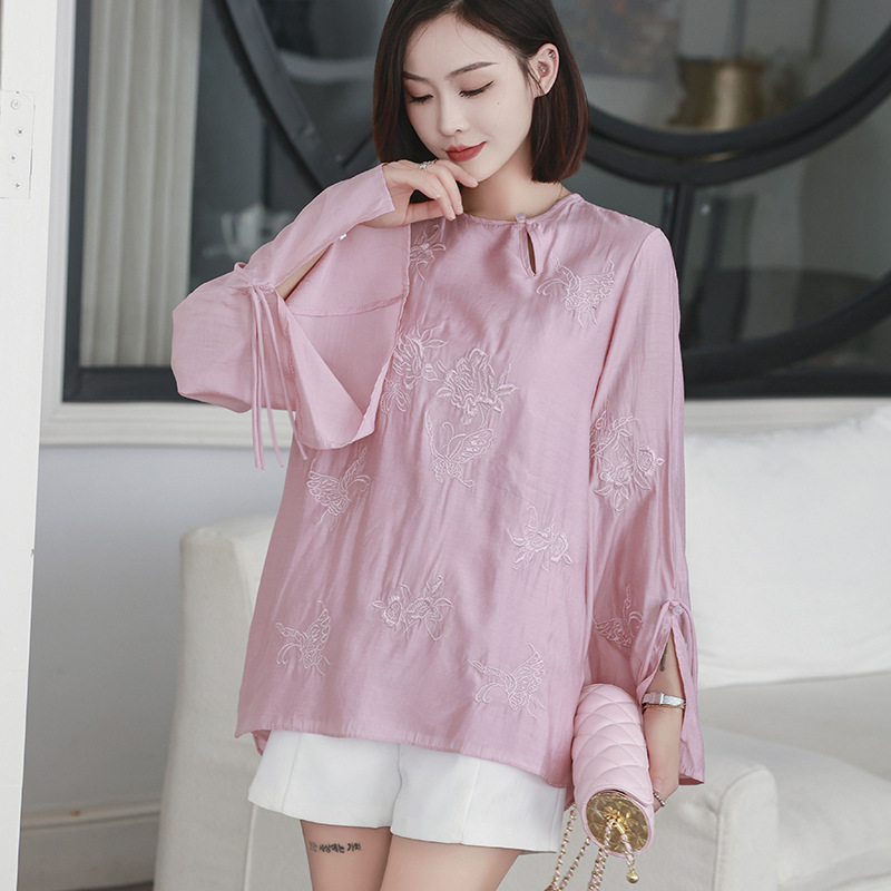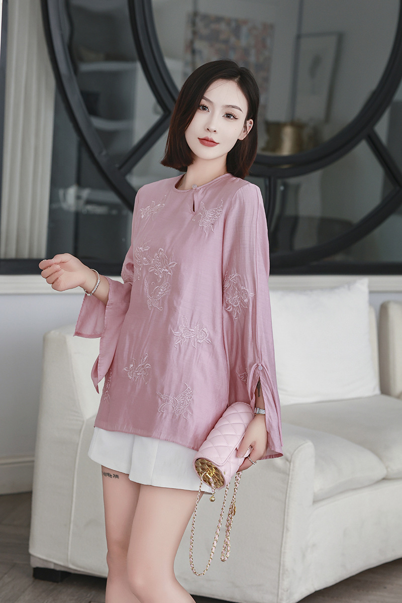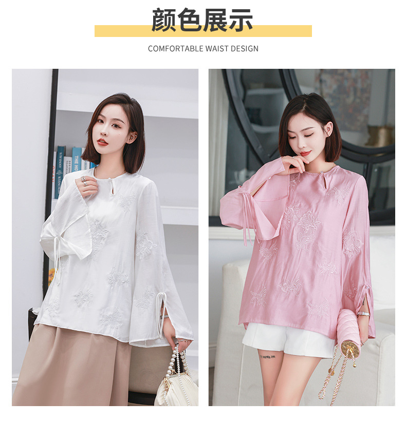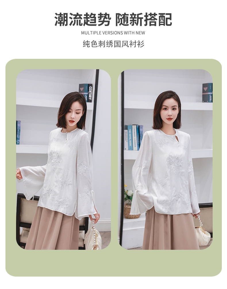 실제 샷 개선 당나라 세트 중국 스타일 2023 봄 긴 소매 중국 자수 빈티지 셔츠 라운드 넥 치파오 탑스토어 가기