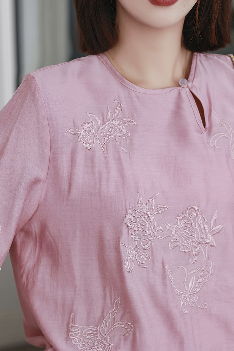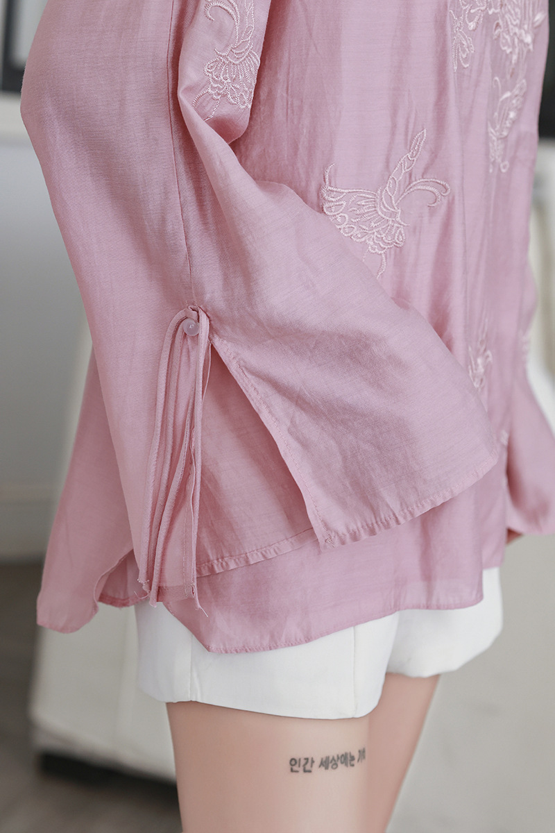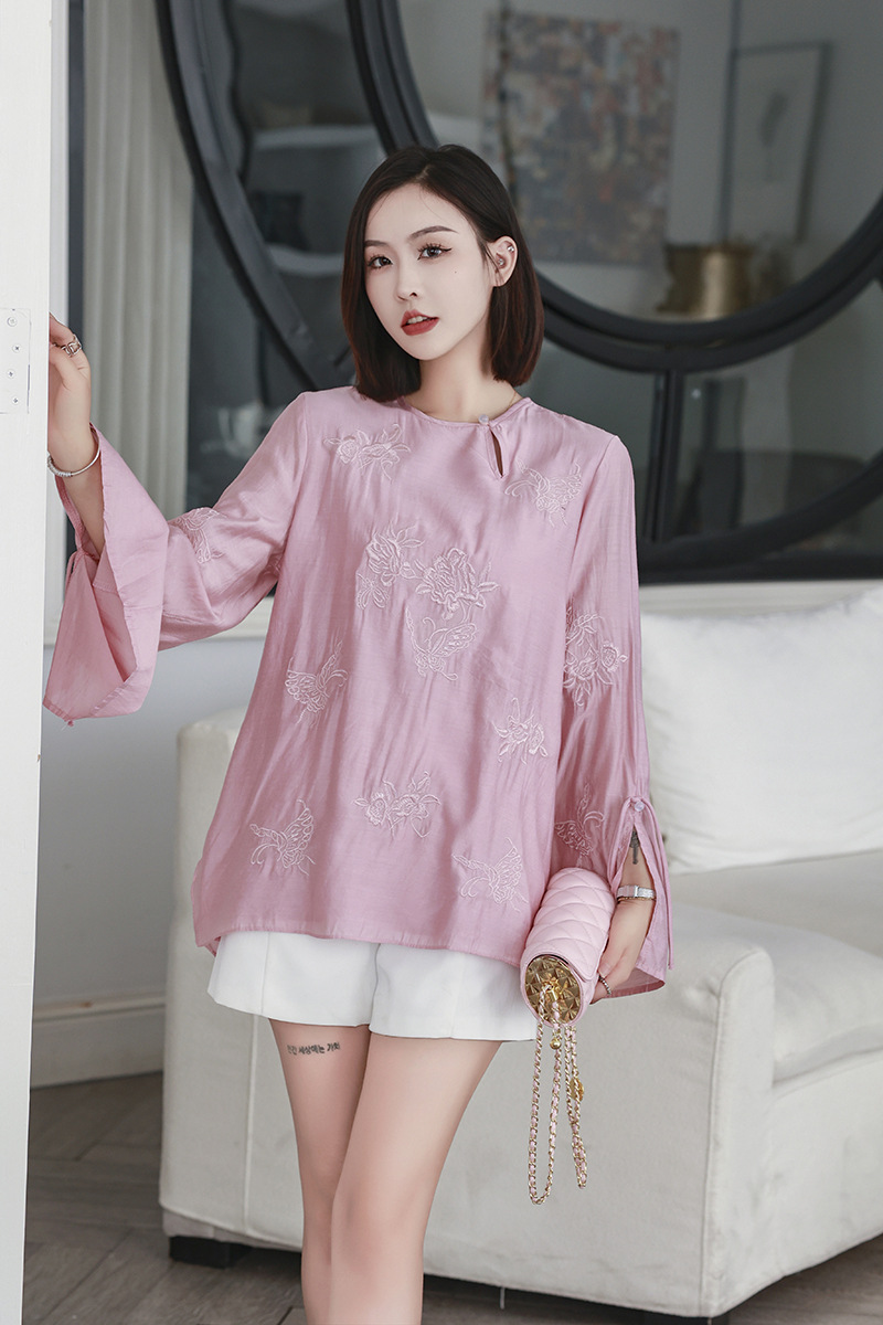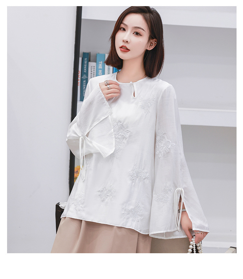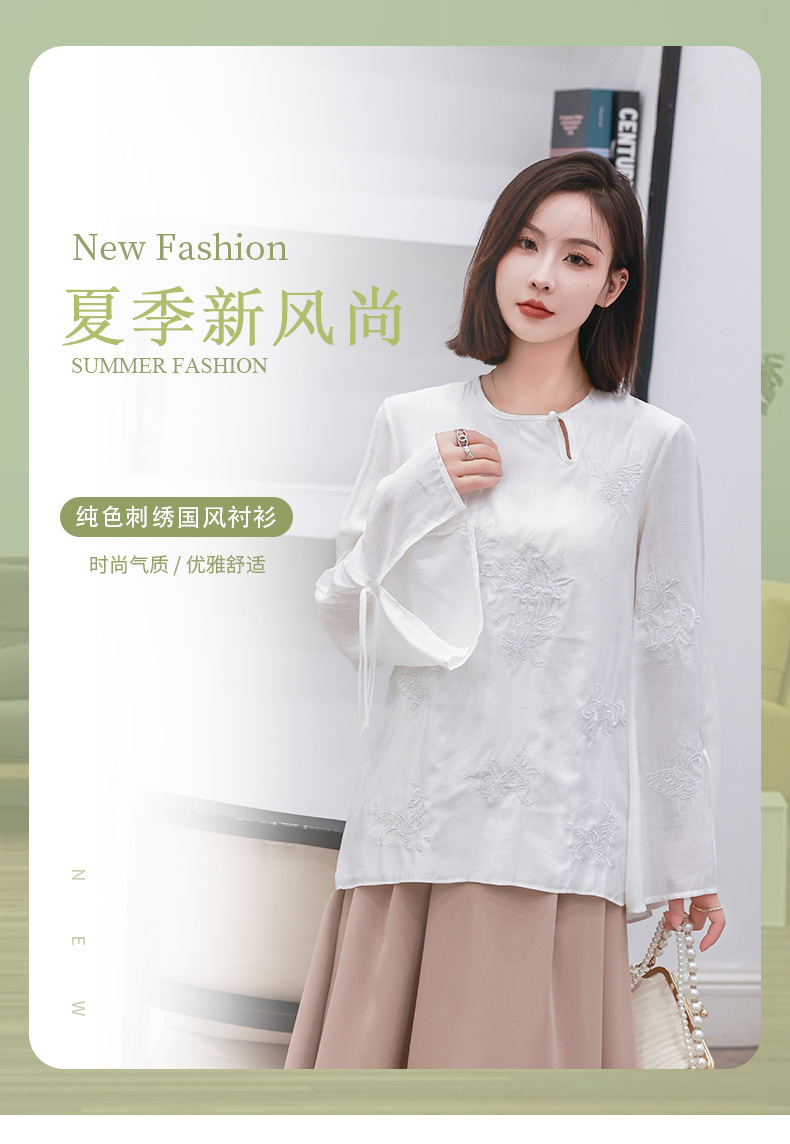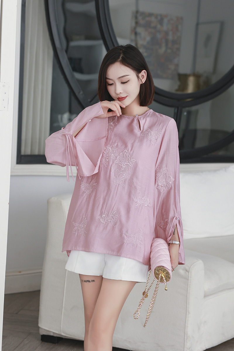 실제 샷 개선 당나라 세트 중국 스타일 2023 봄 긴 소매 중국 자수 빈티지 셔츠 라운드 넥 치파오 탑스토어 가기