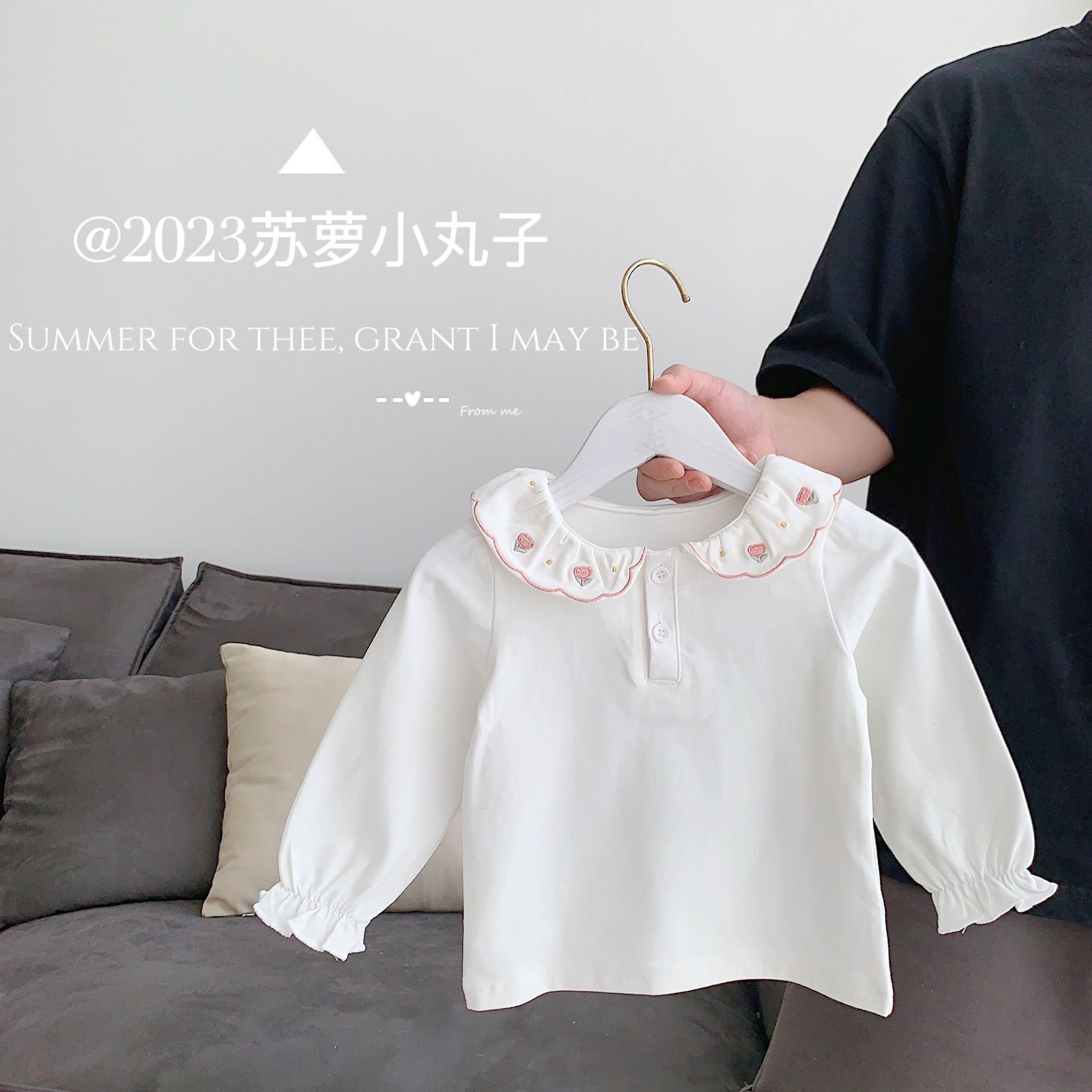 Su Luo 마루키 2023 가을 0-3 세 소녀 어린이 한국 외국 스타일 소녀 꽃 풀오버 긴 소매 기본 셔츠