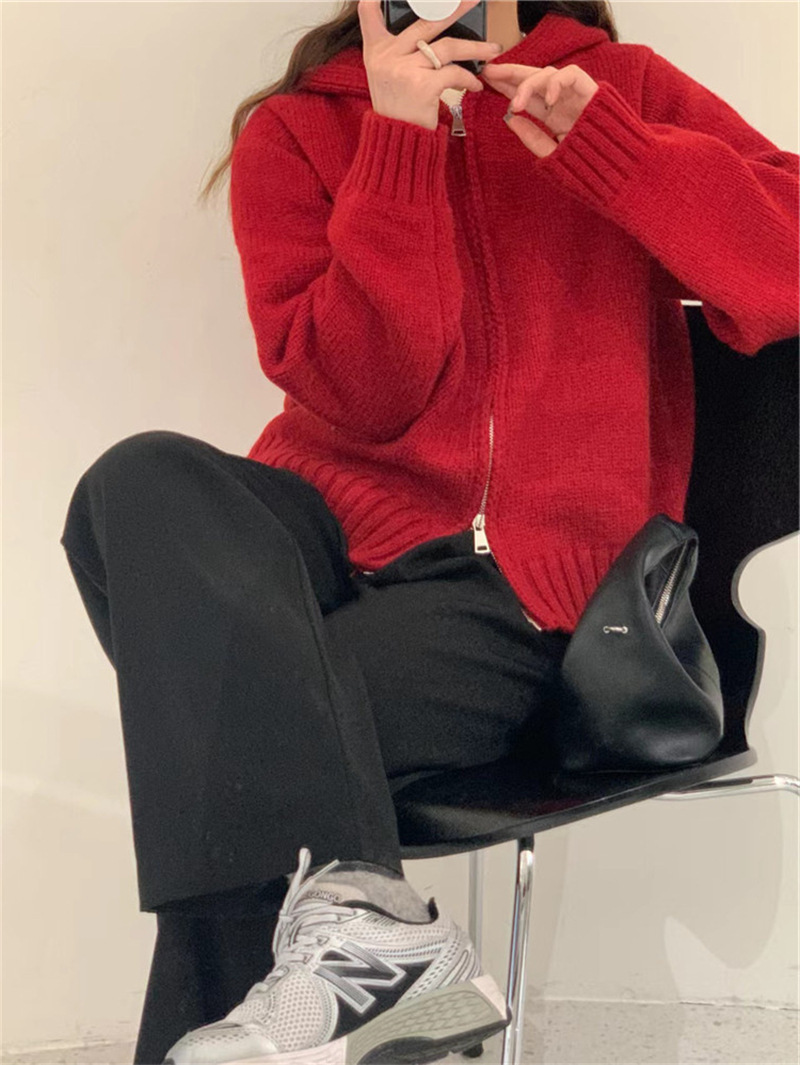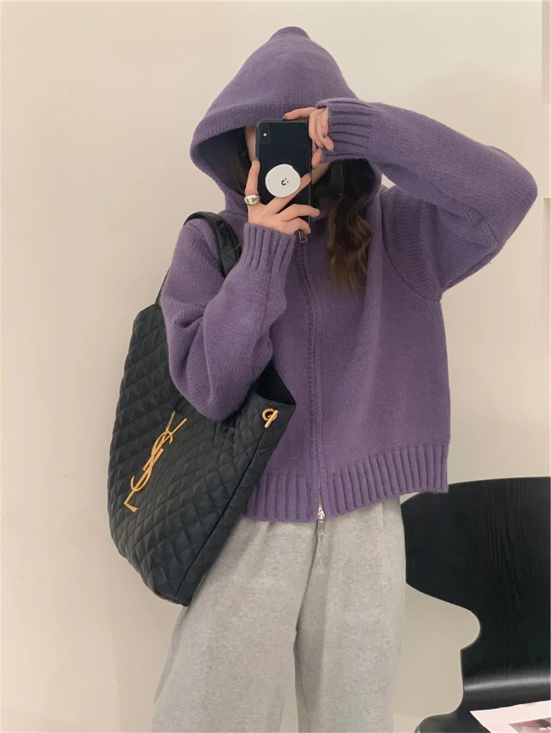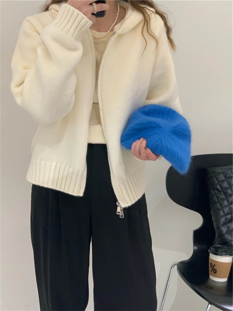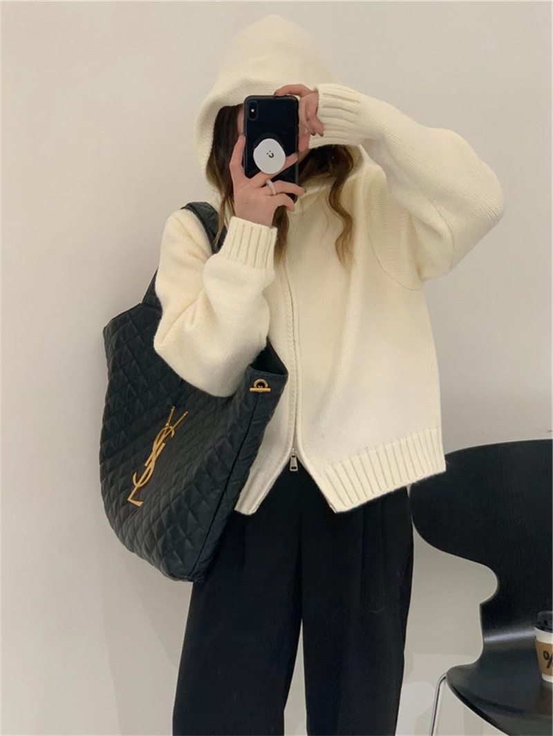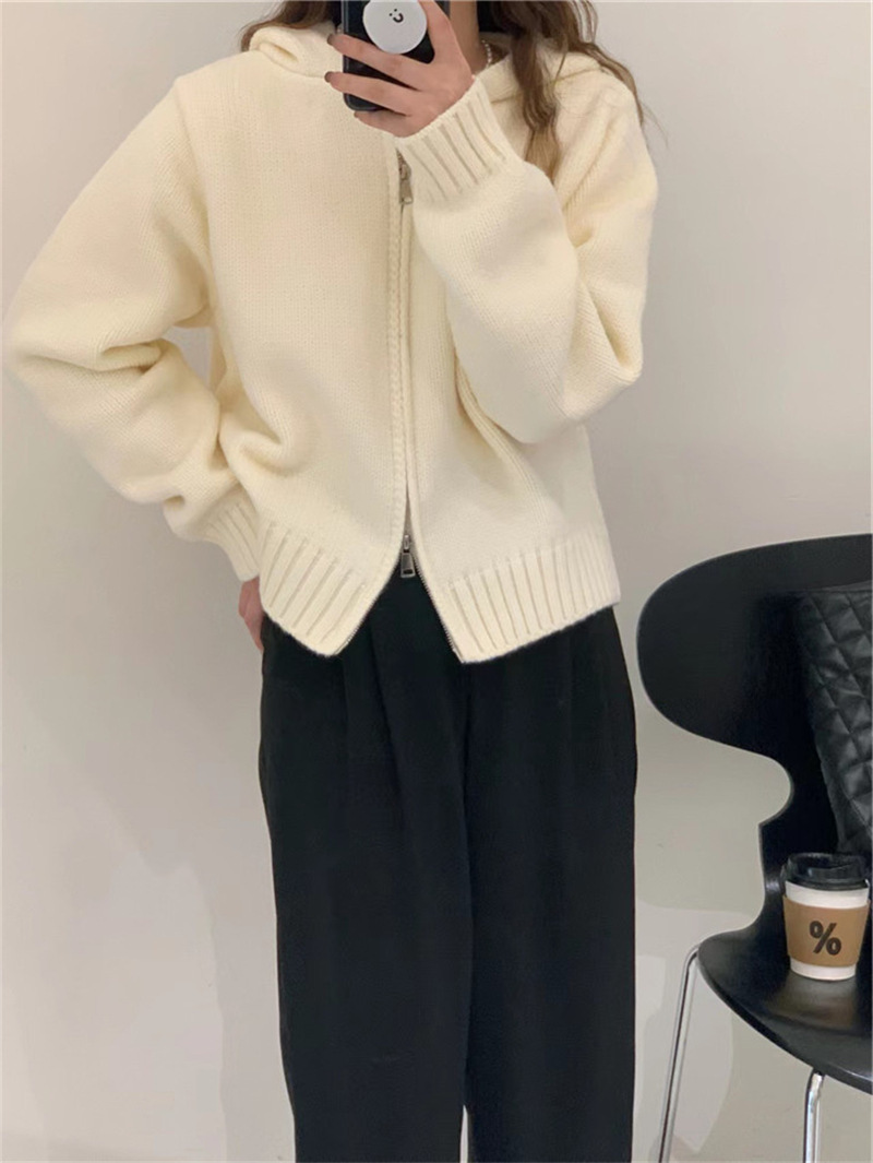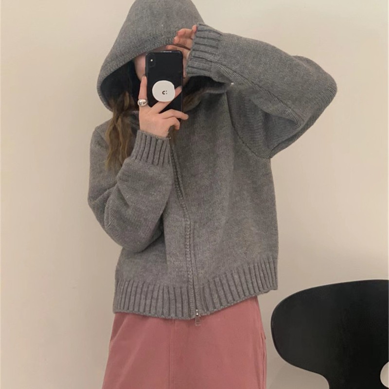 2024 가을, 겨울 새로운 디자인 후드 더블 지퍼 스웨터 코트 여성 느슨한 틈새 두꺼운 니트 카디건 여성스토어 가기