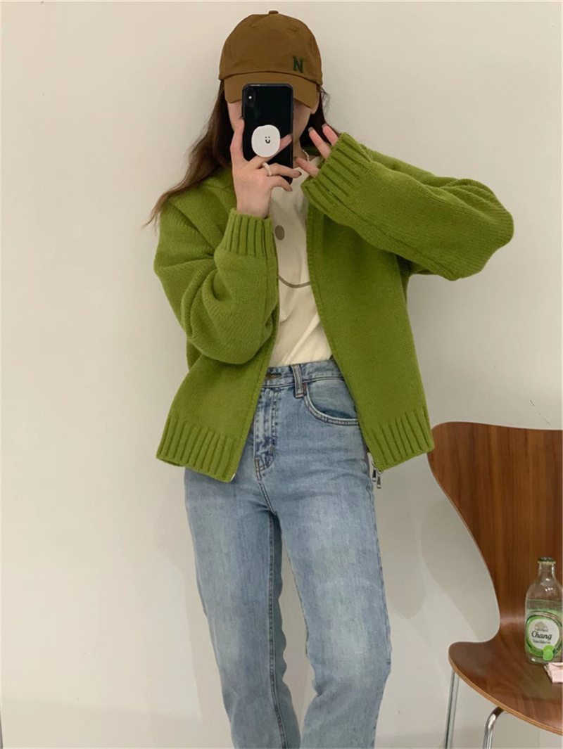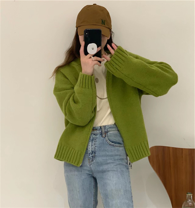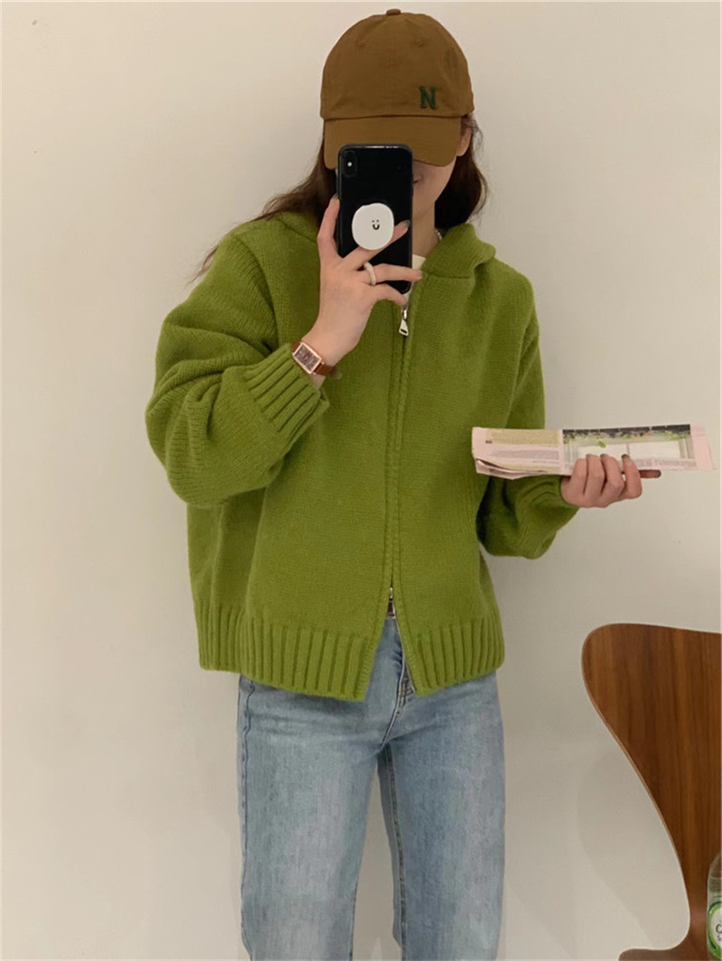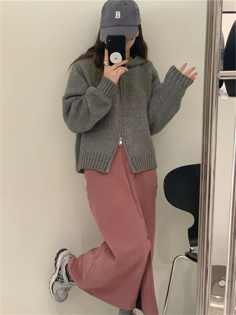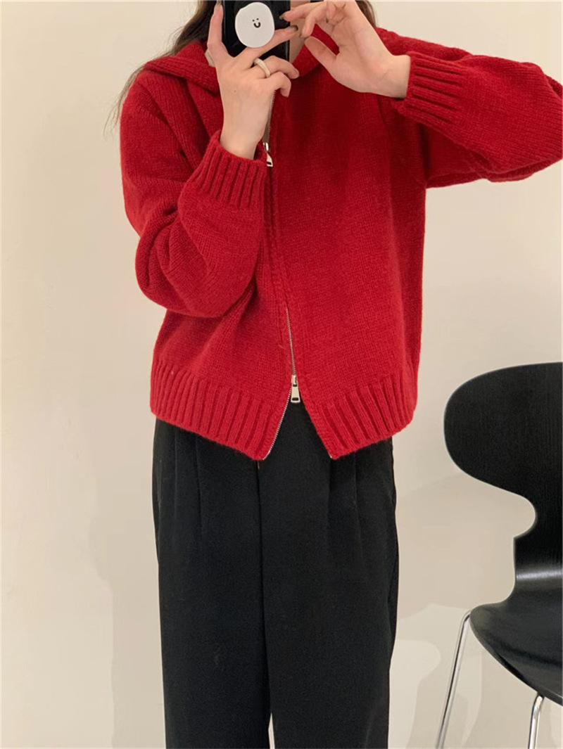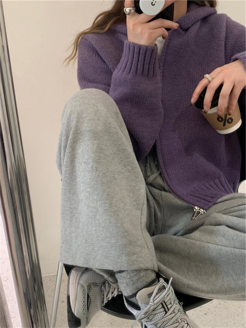 2024 가을, 겨울 새로운 디자인 후드 더블 지퍼 스웨터 코트 여성 느슨한 틈새 두꺼운 니트 카디건 여성스토어 가기