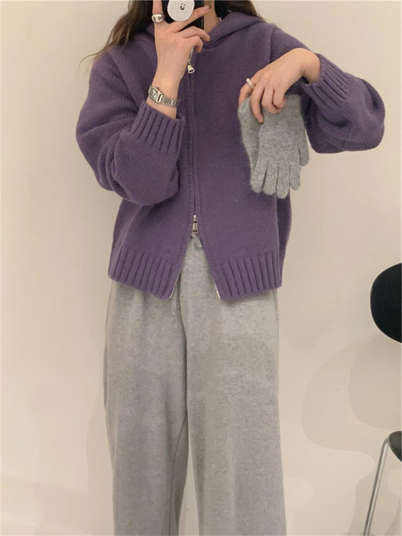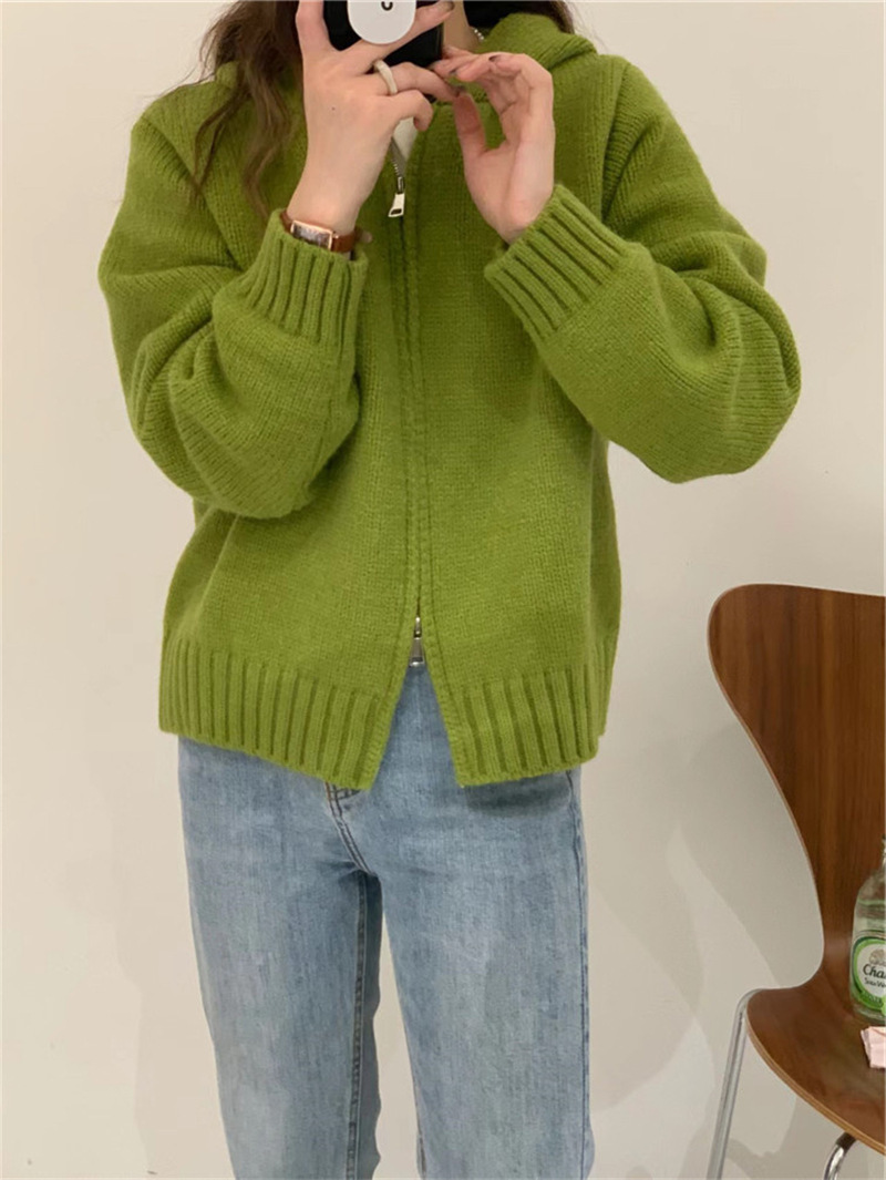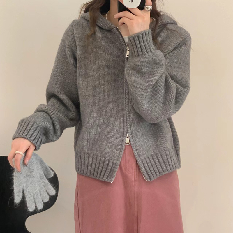2024 가을, 겨울 새로운 디자인 후드 더블 지퍼 스웨터 코트 여성 느슨한 틈새 두꺼운 니트 카디건 여성