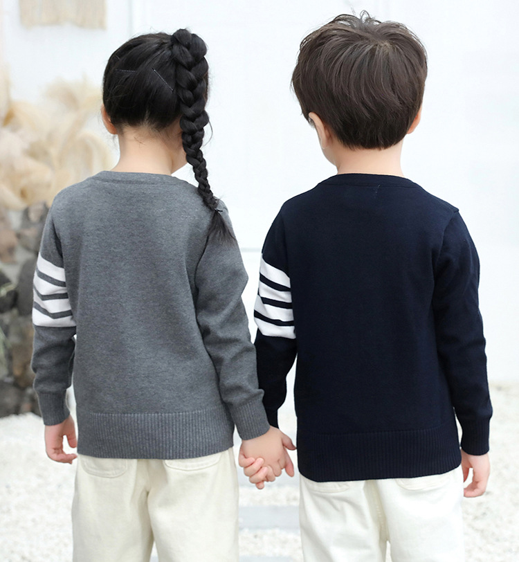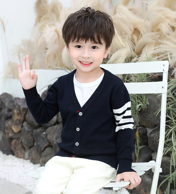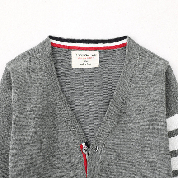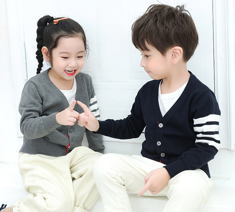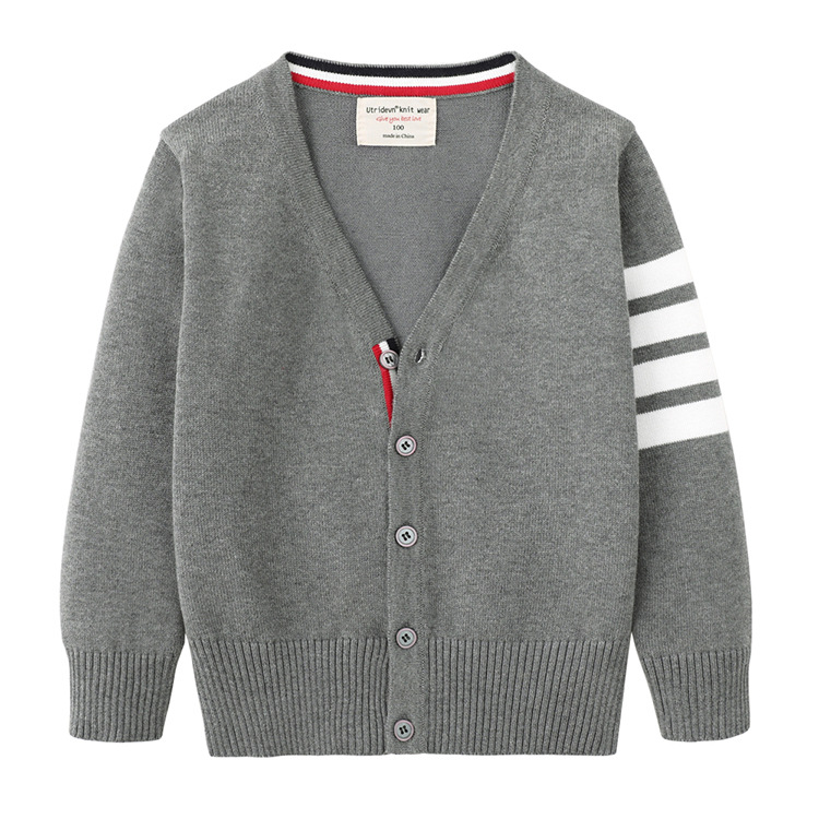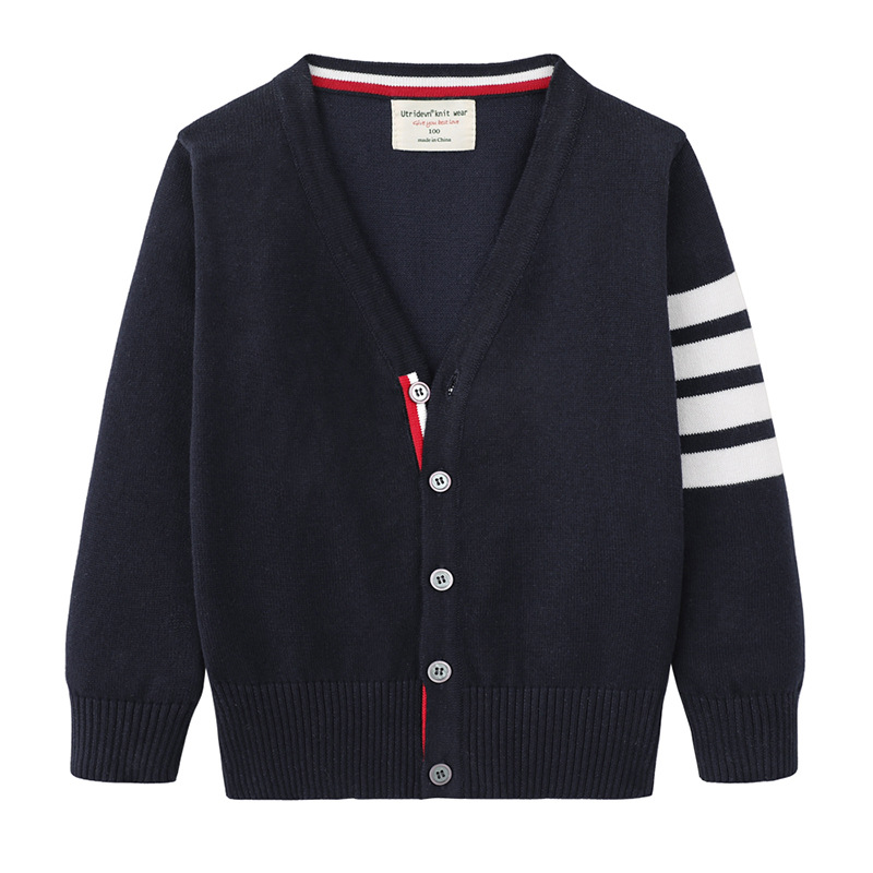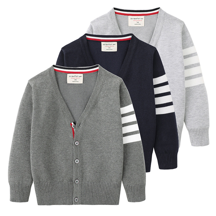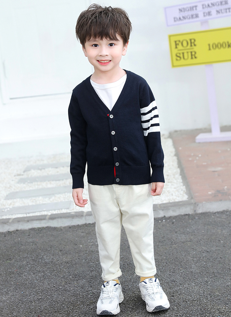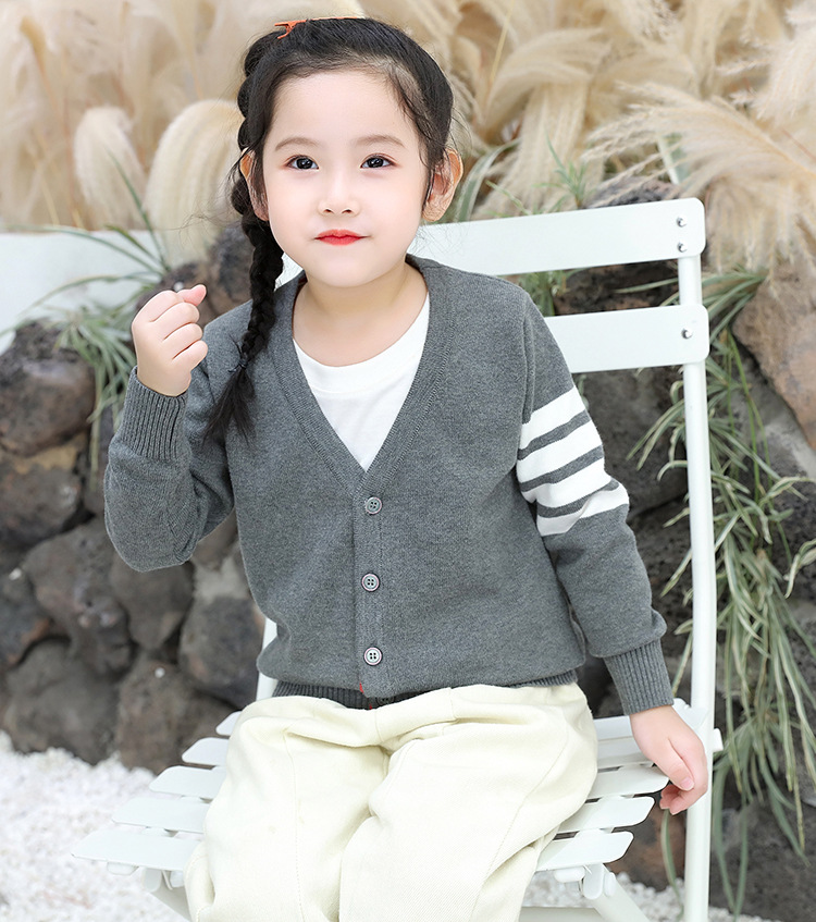 2025 봄과 가을 한국어 버전 중소 어린이 새로운 TB 소년 스웨터 재킷 4 스트라이프 소녀 니트 가디건 도매